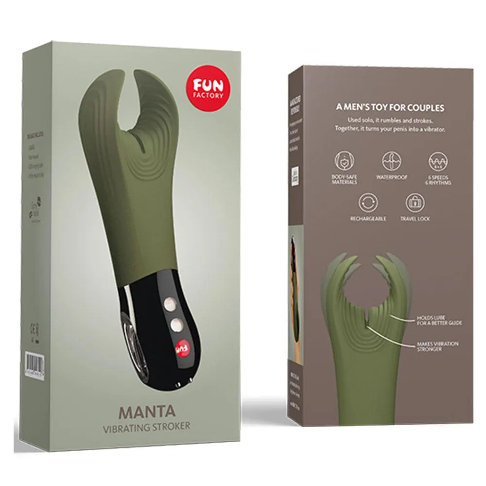 Manta é um elegante brinquedo masculino com design de fácil manuseio para ser usado só ou acompanhado. As fissuras no corpo do brinquedo são para manter o lubrificante garantindo o deslize suave e uma incrível sensação de prazer. Você pode escolher entre 6 velocidades e 6 configurações de ritmo. Produto movido à bateria com carregador interno integrado ao brinquedo (Sistema CLICK "N" CHARGE). Incluso carregador magnético USB. Produto revestido com silicone de grau médico e à prova de água.
