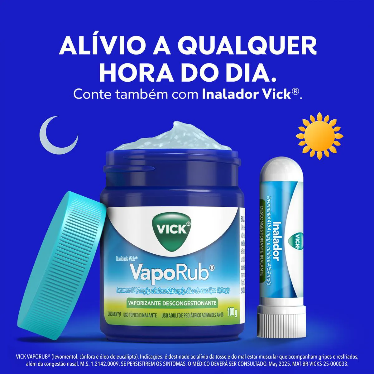 O Vick Vaporub é um unguento de uso externo e para inalação, que ajuda a cuidar de inflamações causadas por doenças respiratórias e incômodos no corpo.