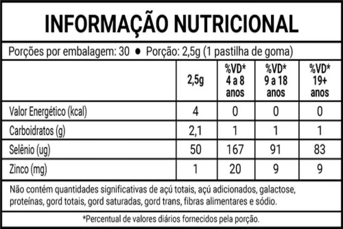 Sugere-se a ingestão de 1 goma ao dia.Advertências: