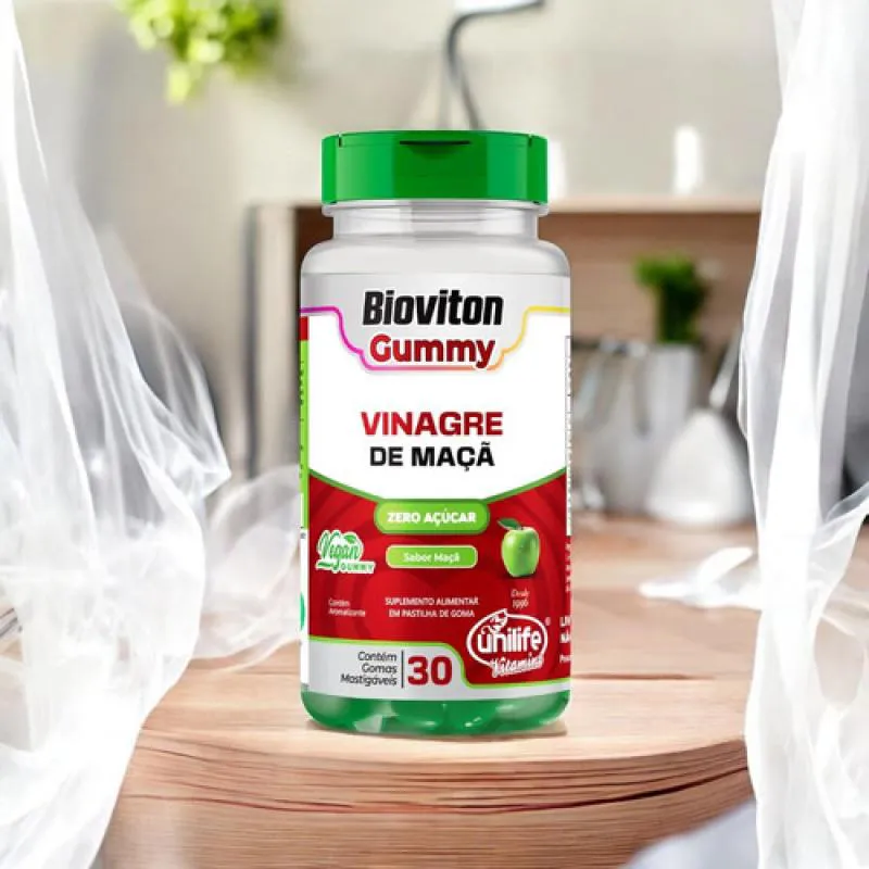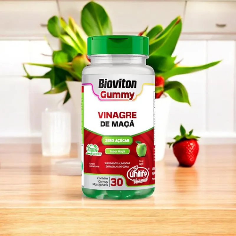 - Suplemento de vinagre de maçã em gomas mastigáveis.
