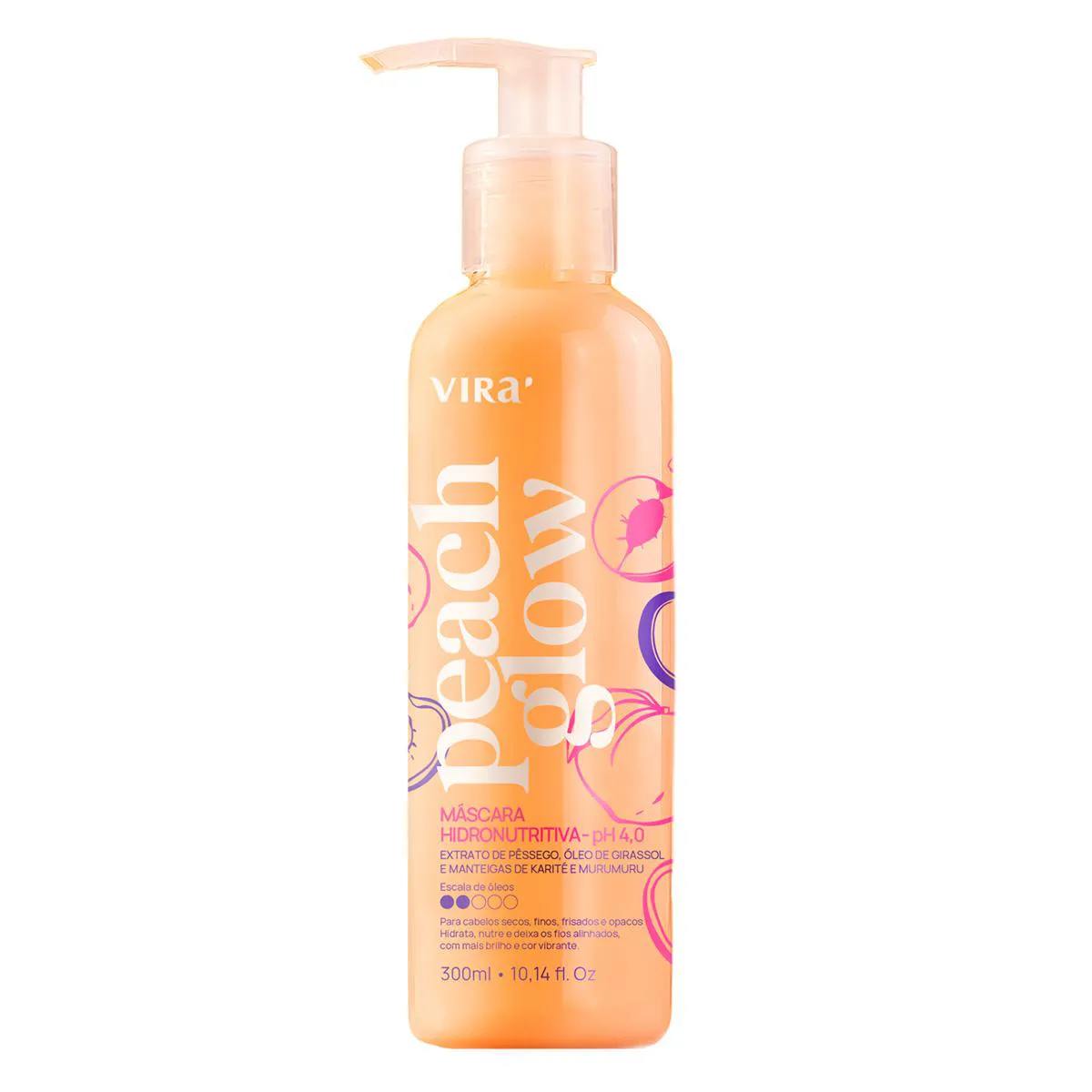Máscara Hidronutritiva Virá Peach Glow Pêssego, Girassol, Karité e Murumuru 300ml