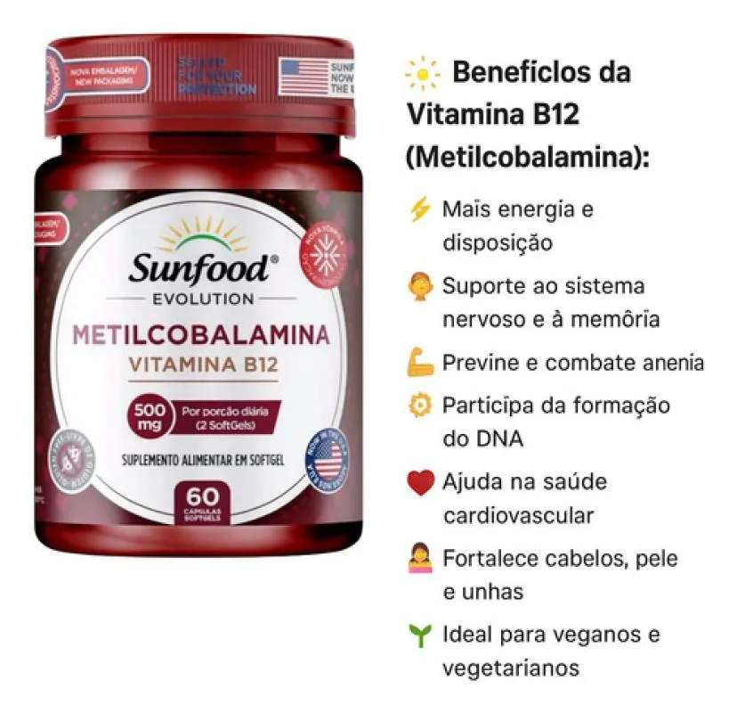 A Metilcobalamina é um suplemento alimentar à base de Vitamina B12 na forma ativa, que oferece alta absorção e biodisponibilidade. Ideal para quem busca suporte para o metabolismo energético, saúde neurológica e produção de glóbulos vermelhos.