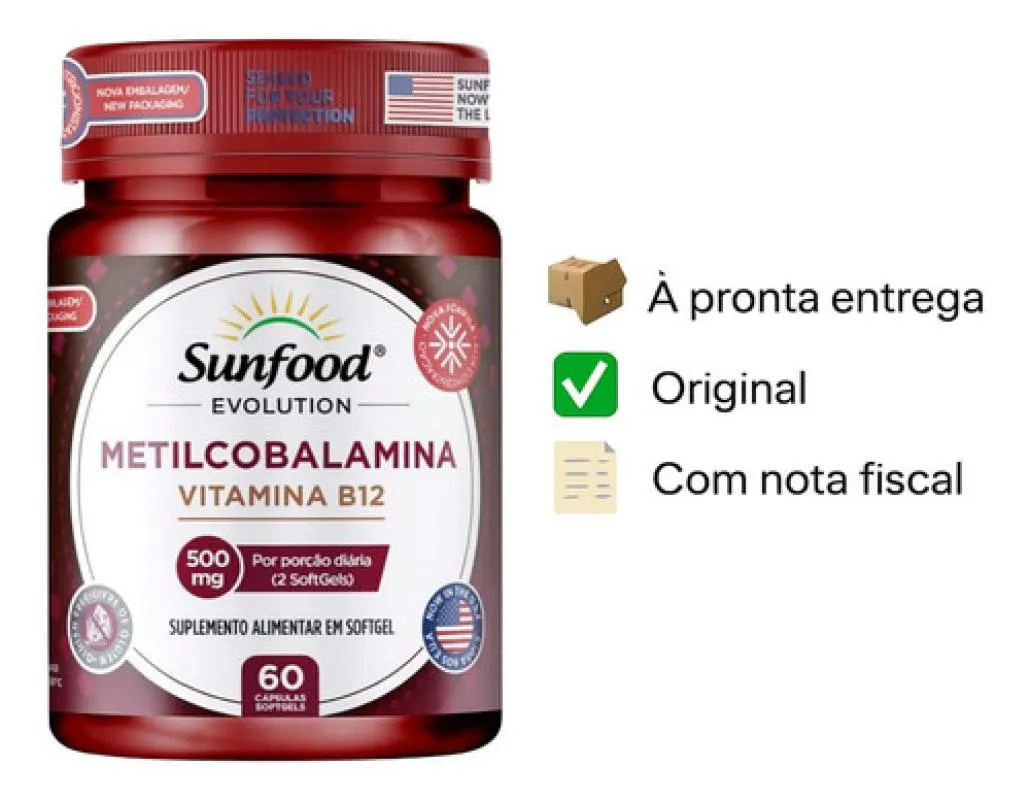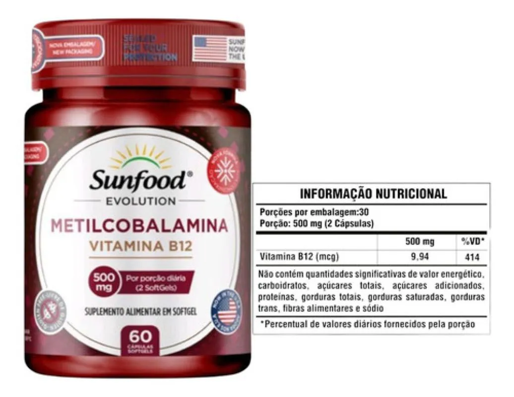 Metilcobalamina Vitamina B12 – 500mg – 60 cápsulas Softgel