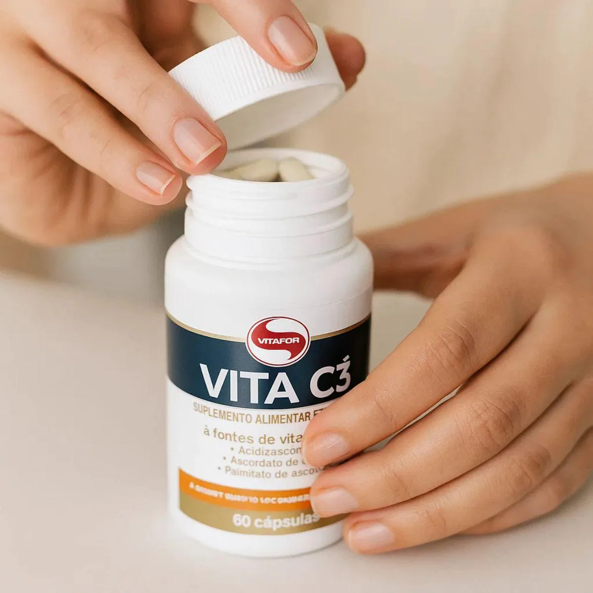 A Vitafor destaca no rótulo as três formas de vitamina C utilizadas e suas quantidades específicas, reforçando o compromisso da marca com transparência. As matérias-primas passam por processos internos de controle rigoroso, garantindo consistência entre os lotes. A composição é enxuta e apresenta apenas os elementos necessários para a proposta do produto, sem adições que dificultem a leitura ou compreensão.