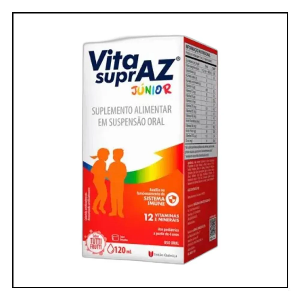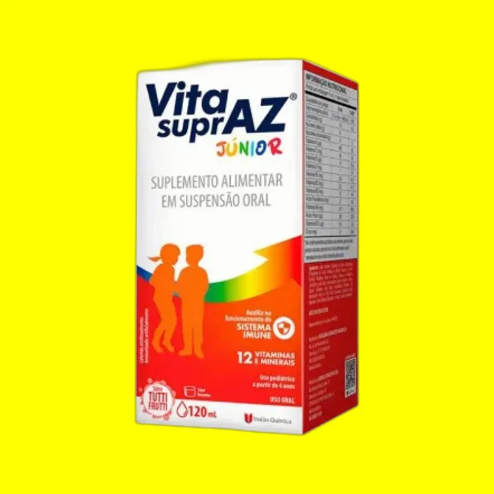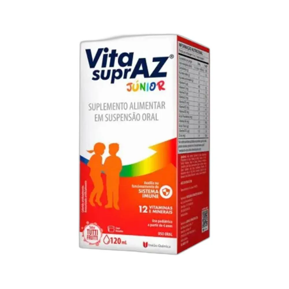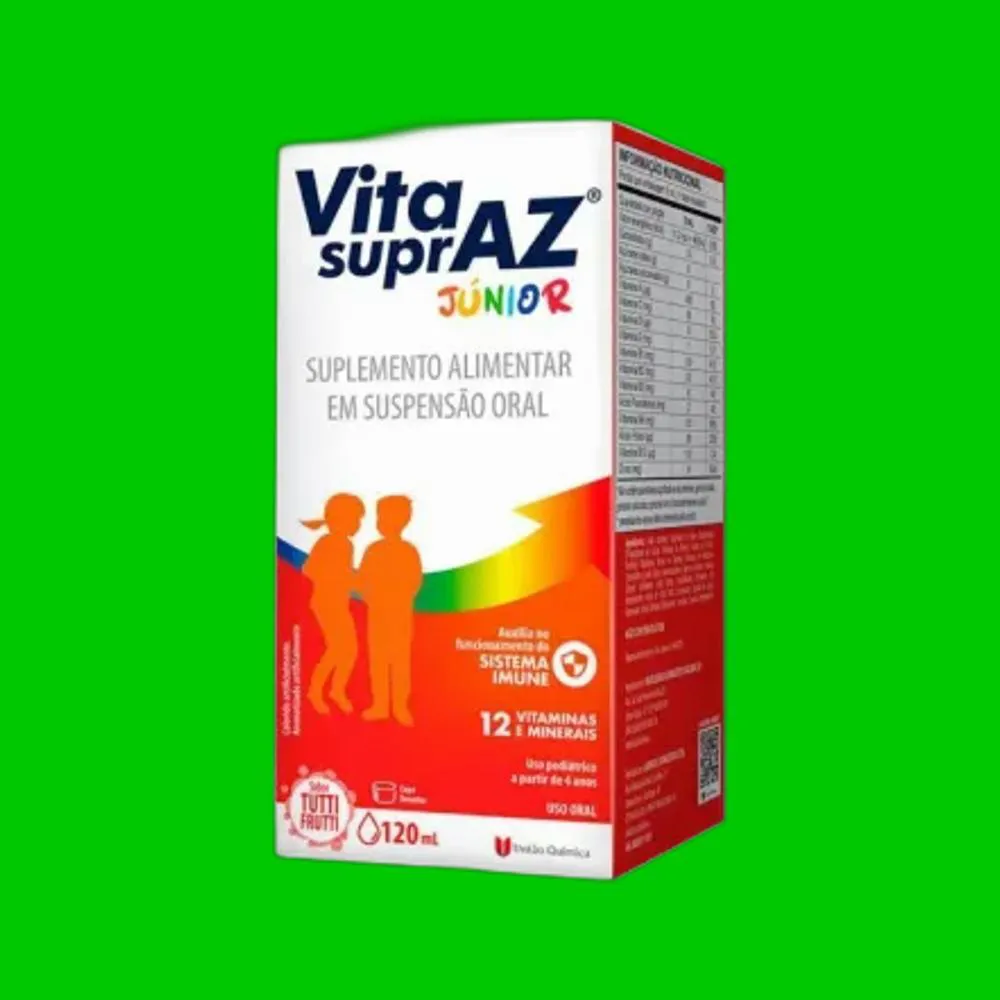 Vita SuprAZ Junior é um suplemento polivitamínico em suspensão oral desenvolvido especialmente para crianças a partir de 4 anos de idade. Sua fórmula balanceada contém uma combinação de vitaminas, minerais e outros nutrientes importantes para o desenvolvimento físico e cognitivo das crianças. Pode ser utilizado como parte de uma dieta equilibrada para promover a saúde geral e o bem-estar infantil.