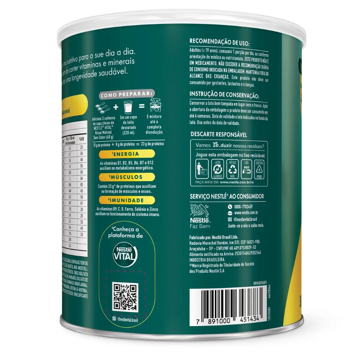 - O Suplemento Alimentar em Pó Nestlé Vital Matinal Sem Sabor complementa a alimentação diária com vitaminas, minerais e proteínas.