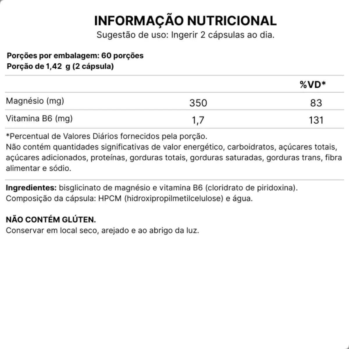 - Composição sem aditivos supérfluos, garantindo pureza do suplemento.