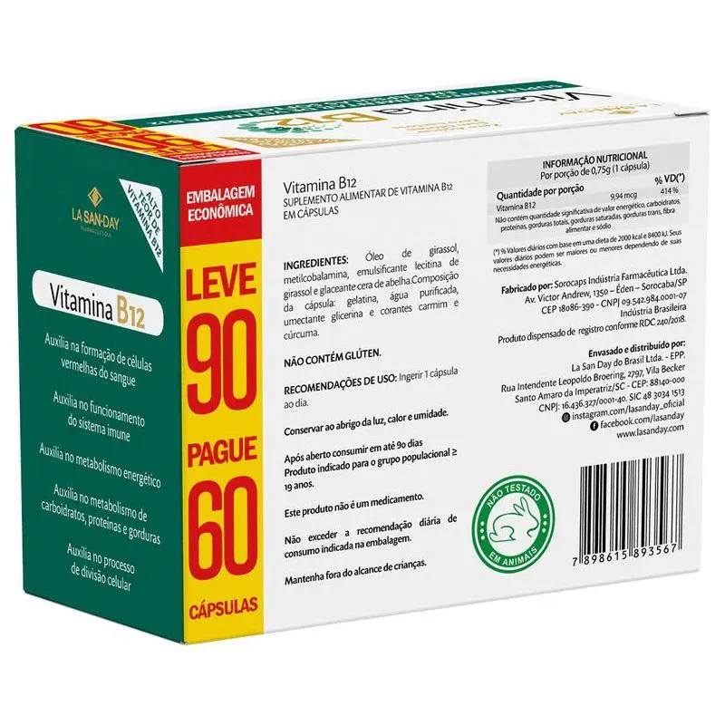 Vitamina B12 Leve 90 Pague 60 Capsulas – La San Day