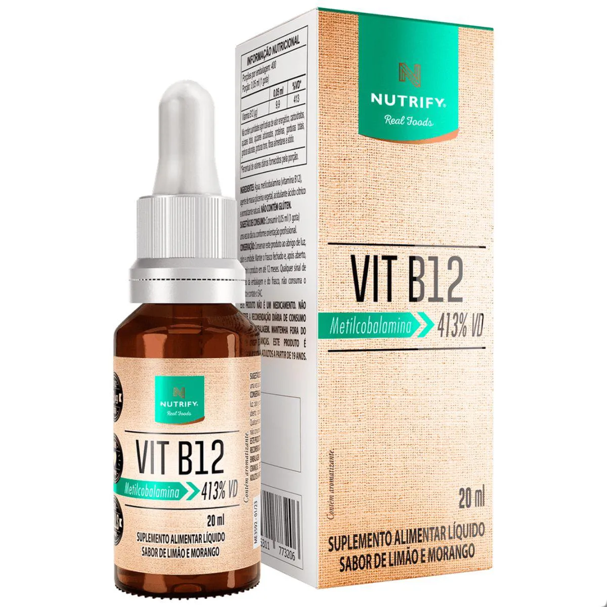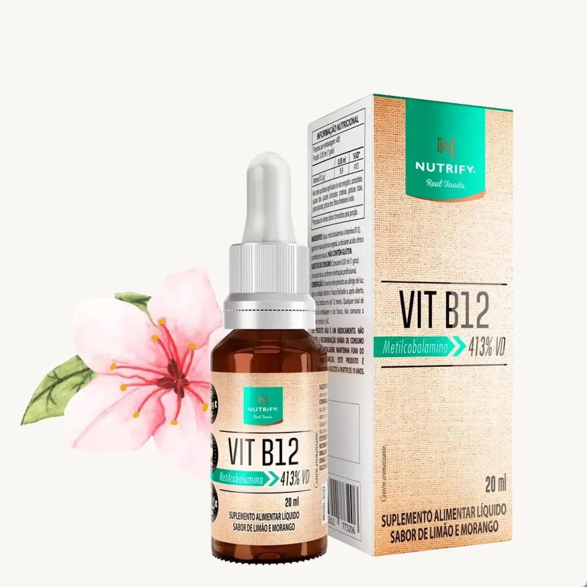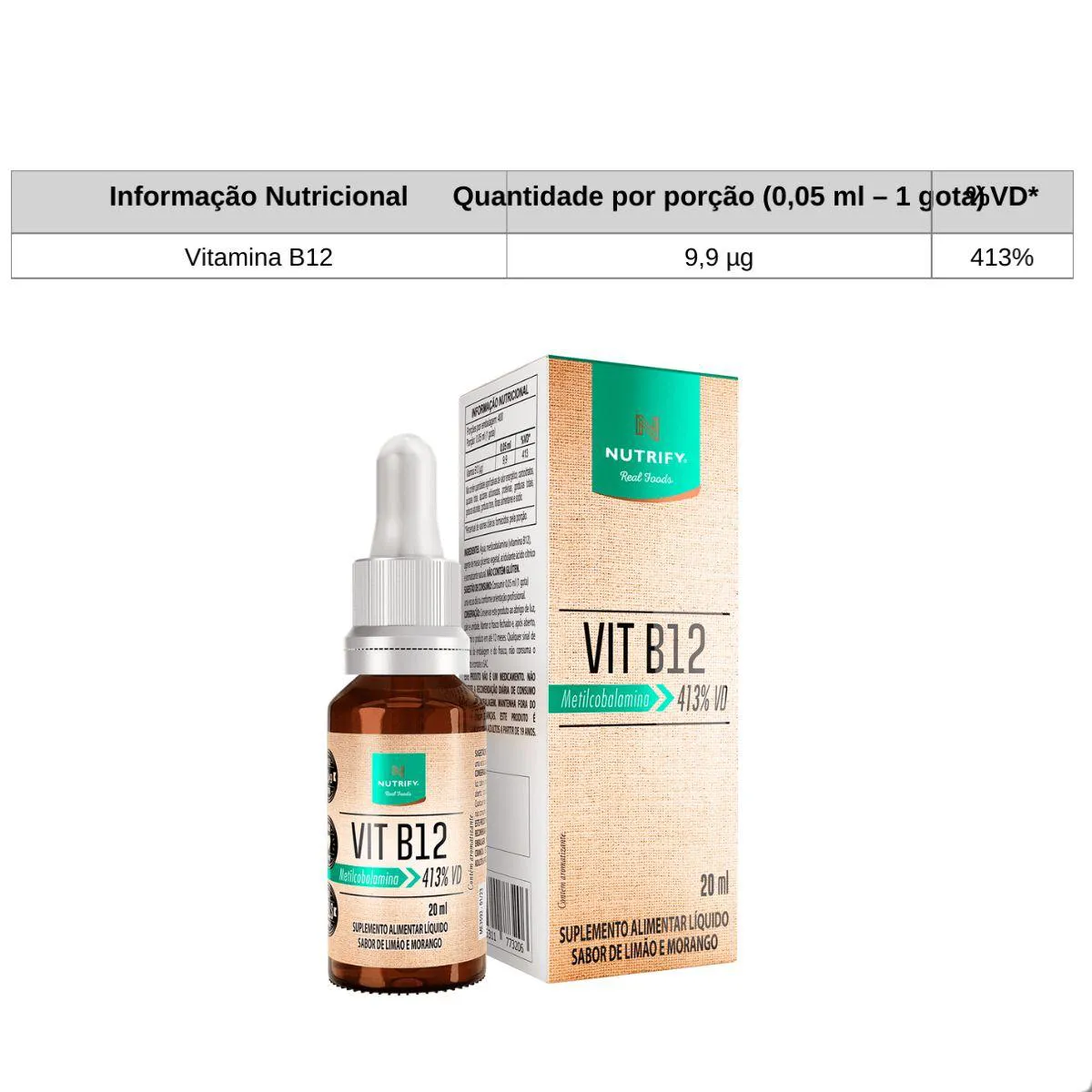 Vitamina B12 Metilcobalamina 413% Vd 20Ml Nutrify Limão C Morango