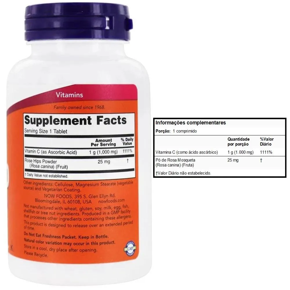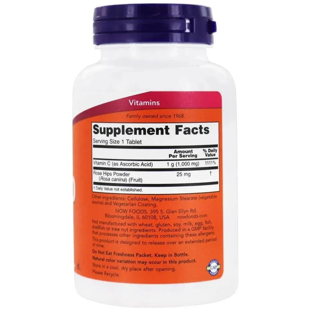 Vitamina C - 1000 Mg 100 Tablets com Rosa Mosqueta Now Foods