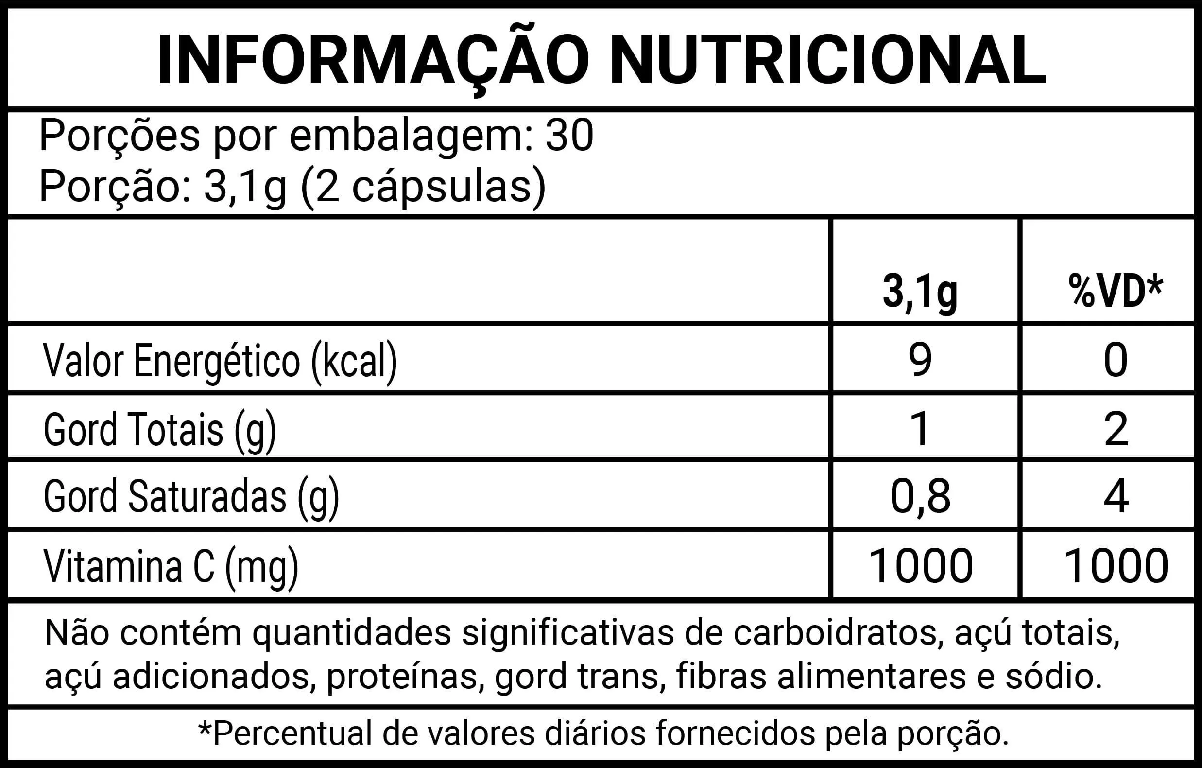 Ascorbato de cálcio, óleo de coco, óleo de girassol; Emulsificante: lecitina de girassol.