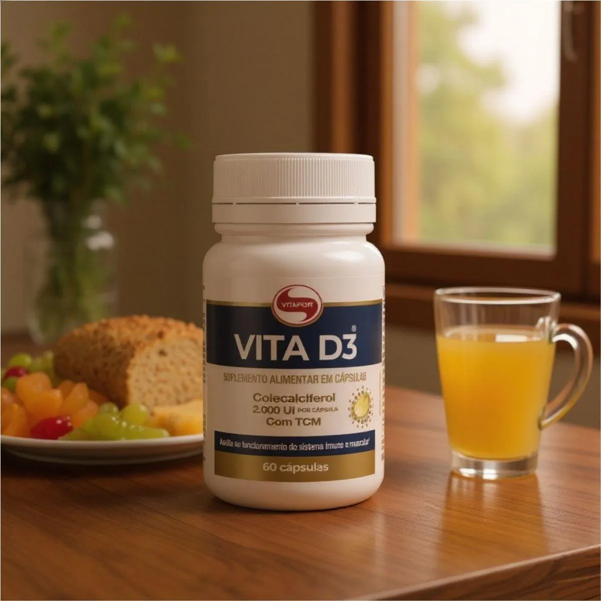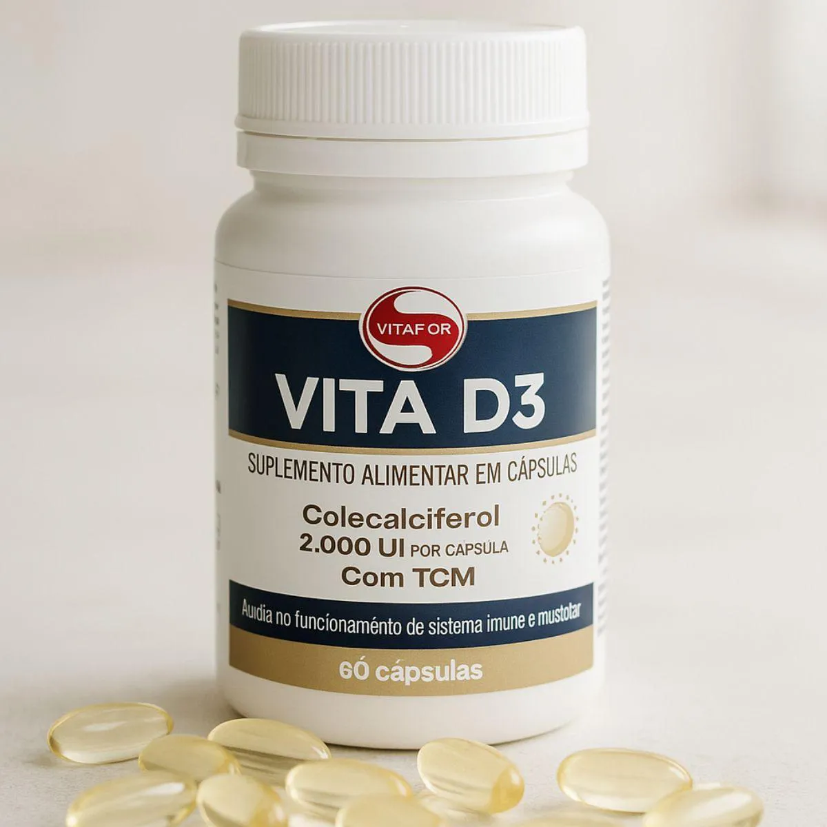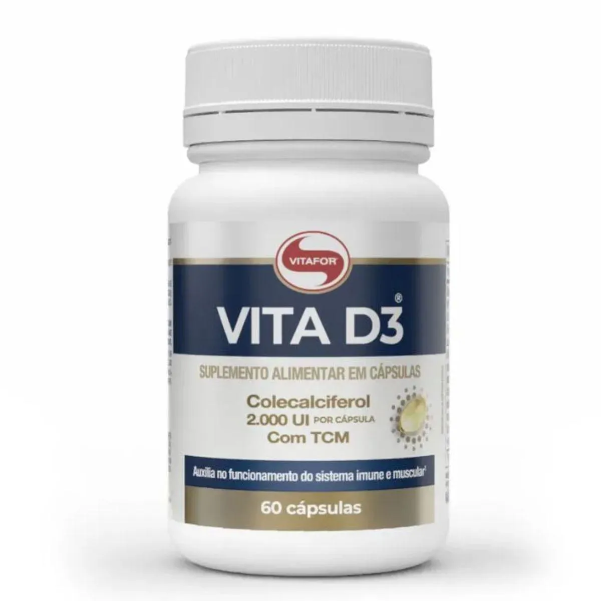 A Vitamina D3 2.000UI com TCM é um suplemento nutricional em formato de cápsulas, desenvolvido pela marca Vitafor com matérias-primas selecionadas e processos rigorosos de controle. Apresentado em um frasco compacto com 60 cápsulas, o produto possui uma fórmula minimalista e sem aditivos desnecessários. Serve para auxiliar na organização nutricional e bem-estar, oferecendo uma suplementação prática e simples para pessoas com estilos de vida ativos. As cápsulas são de fácil consumo, dispensam preparo, podem ser tomadas rapidamente em qualquer ambiente e são facilmente transportáveis em bolsas e mochilas.