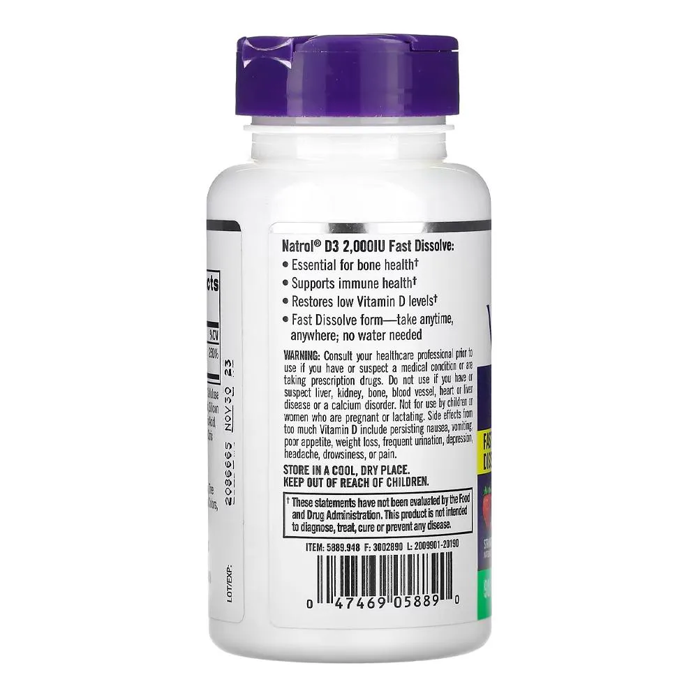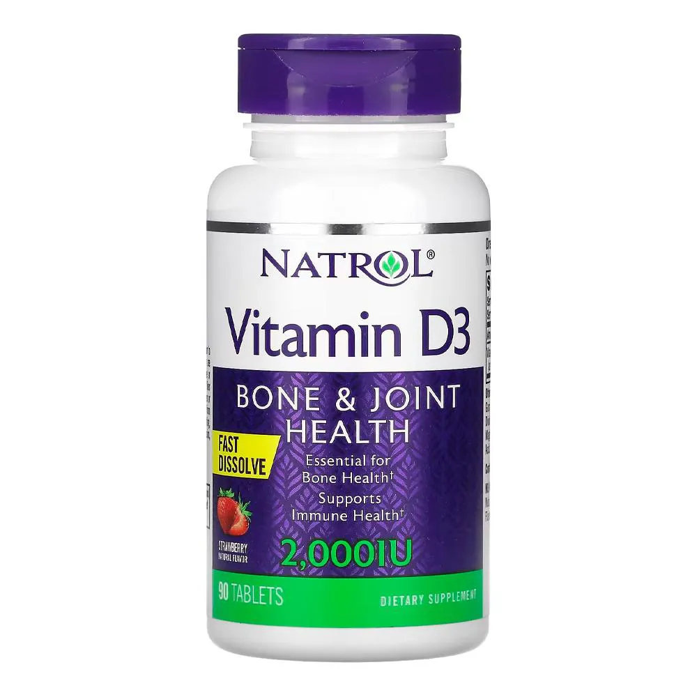Vitamina D3 50mcg Natrol 90 Tabs Sabor Morango 1. Suporte Essencial com Vitamina D3: