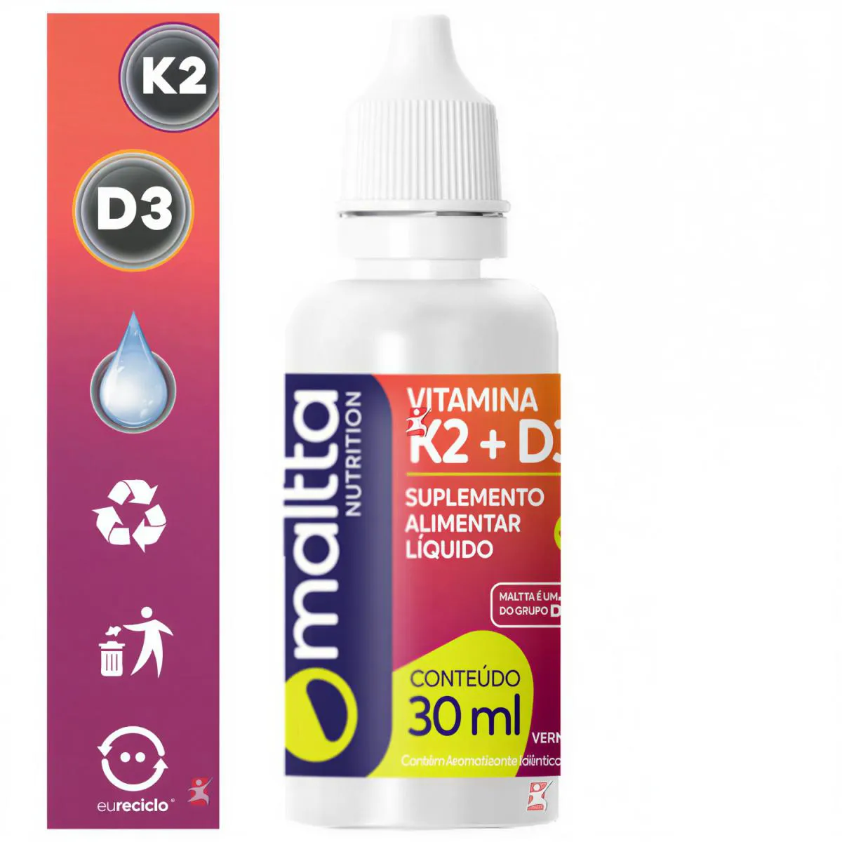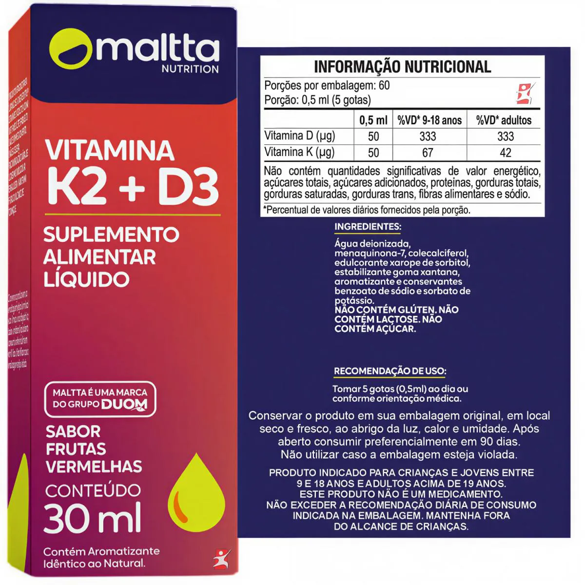 Vitamina D3 + K2 Fórmula Concentrada em Gotas 30 Ml Frutas Vermelhas - Maltta Nutrition