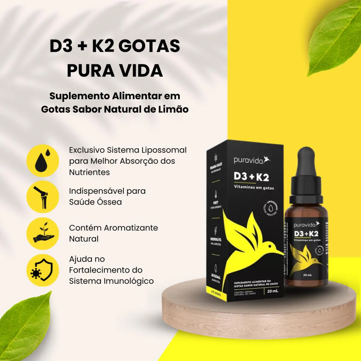 VITAMINA D3 + K2 PURAVIDA GOTAS 20ML Limão