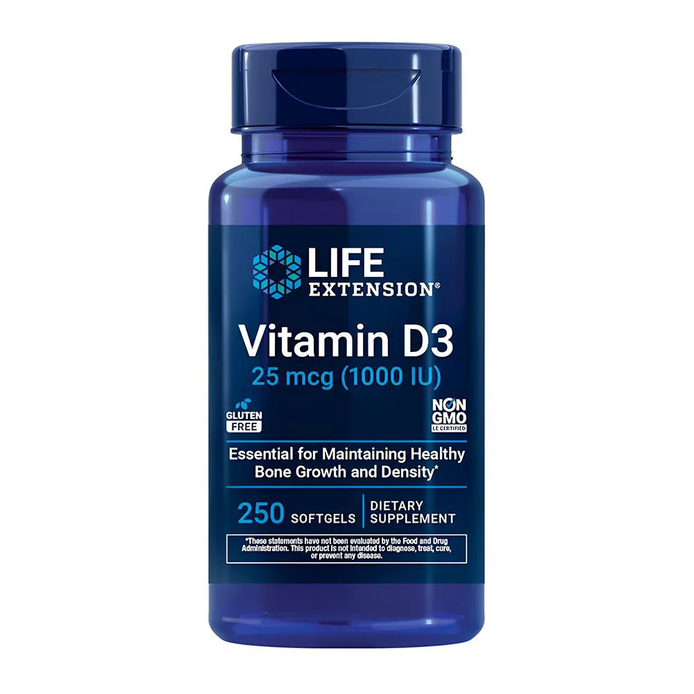 A Vitamin D3 1000 IU é um suplemento alimentar em softgels que fornece 1000 UI de vitamina D3 por cápsula. Produzida pela Life Extension, apresenta fórmula pura e concentrada, ideal para complementar a ingestão diária dessa vitamina essencial.