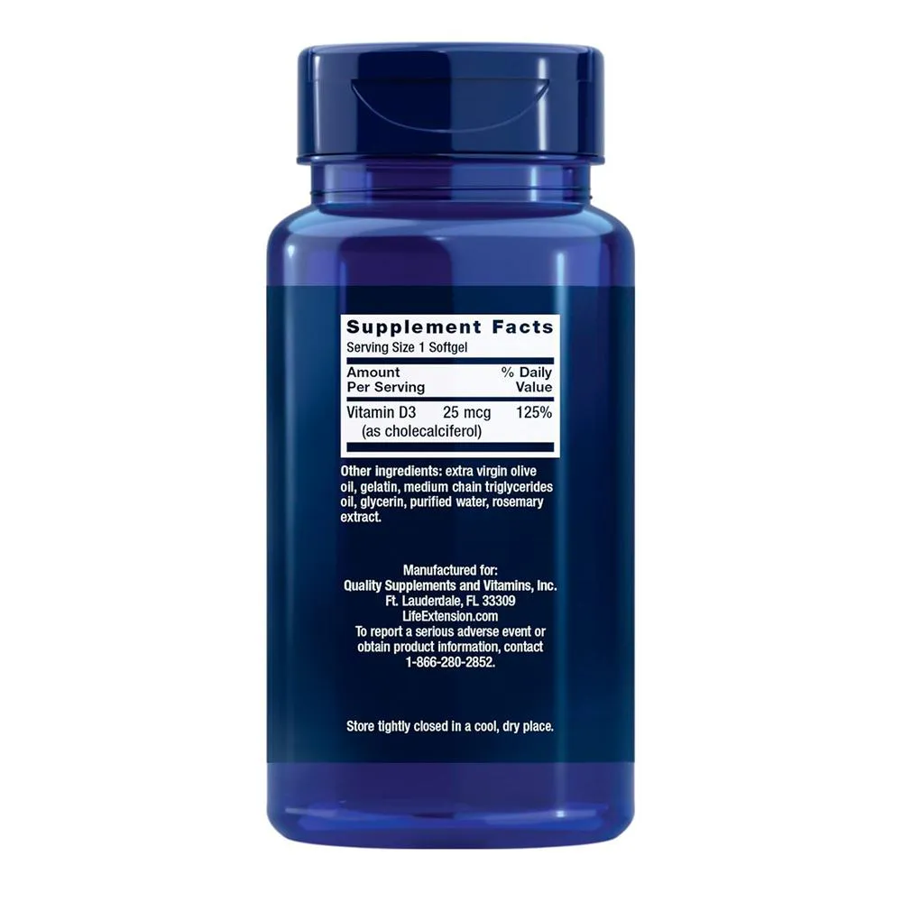 Vitamina D3 Life Extension 1000 UI 250 Softgels Pura Premium
