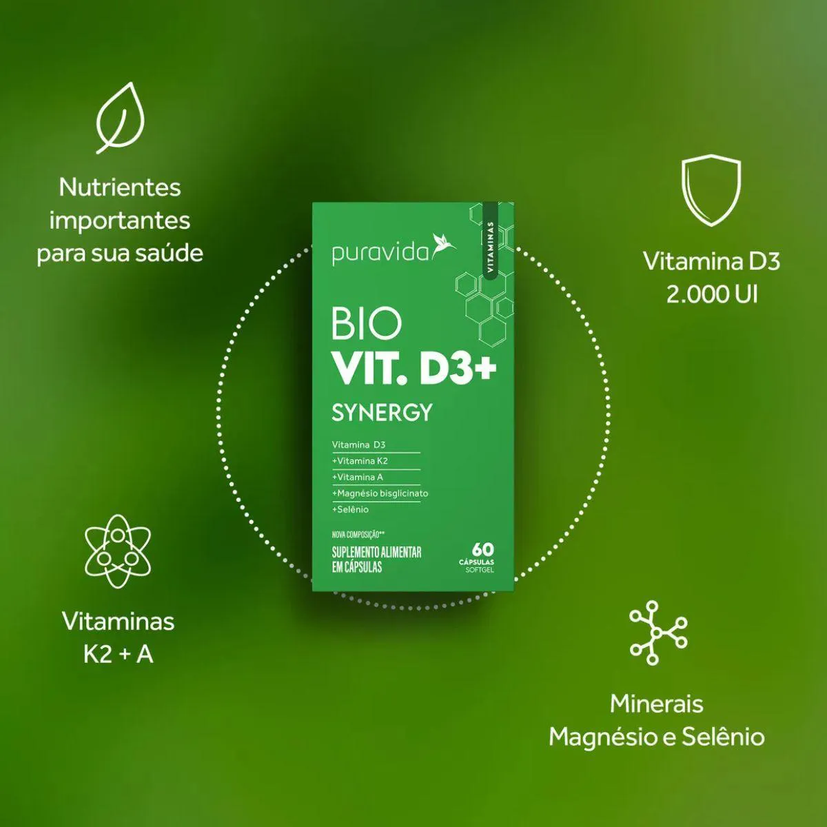 Vitamina D3 Sinergy 60 Cápsulas Pura Vida Natural