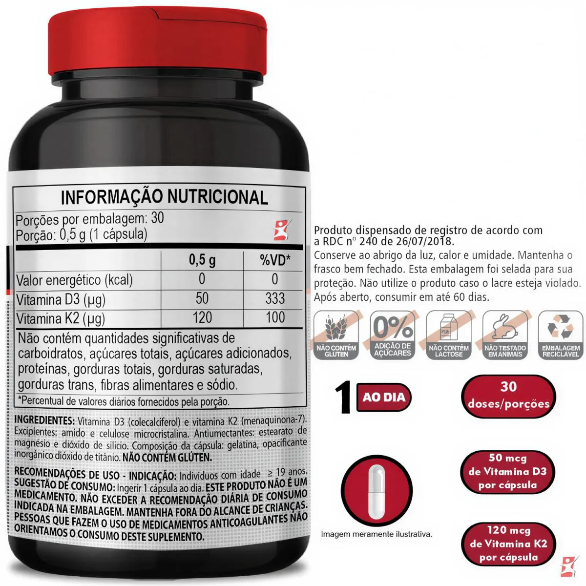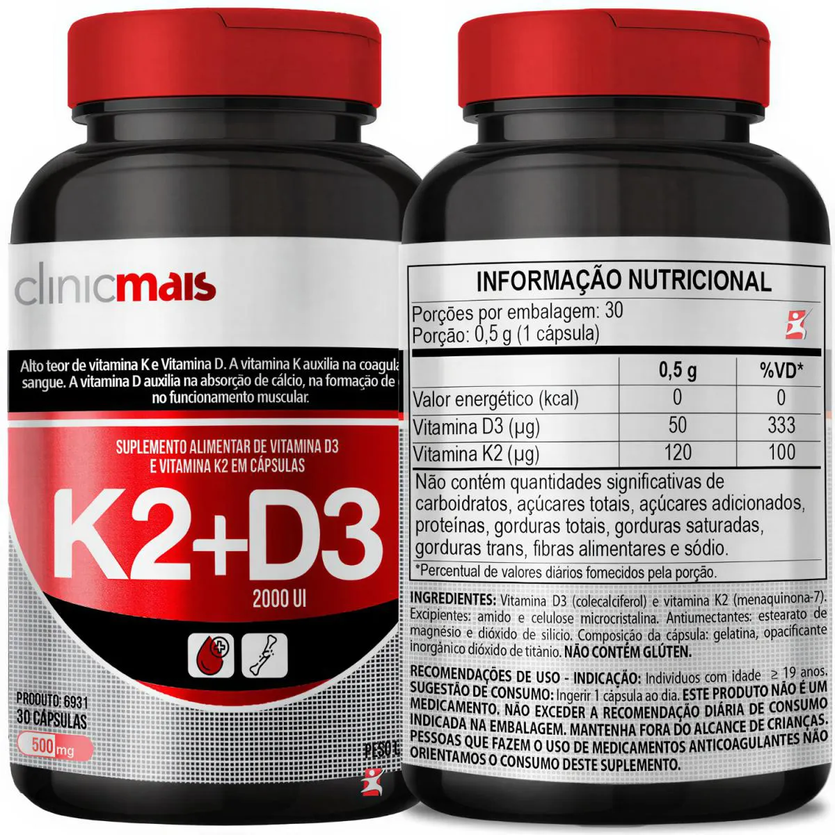 Vitamina K2 120Mcg + D3 50Mcg Menaquinona Mk7 30 Cápsulas - Clinicmais