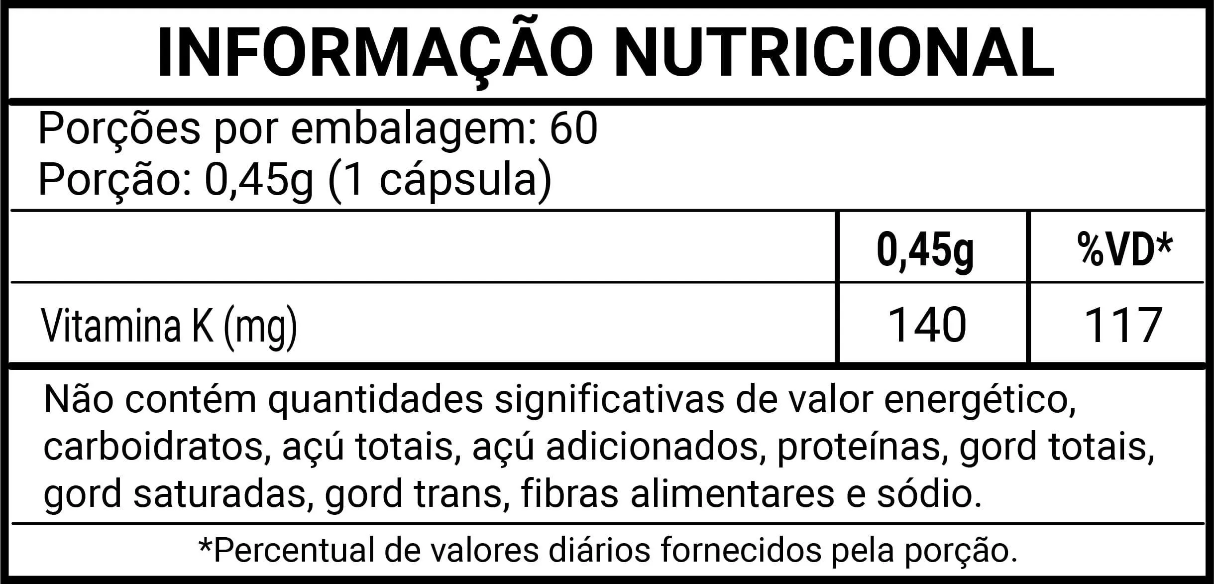 - Suplemento com Vitamina K2 (Menaquinona-7).
