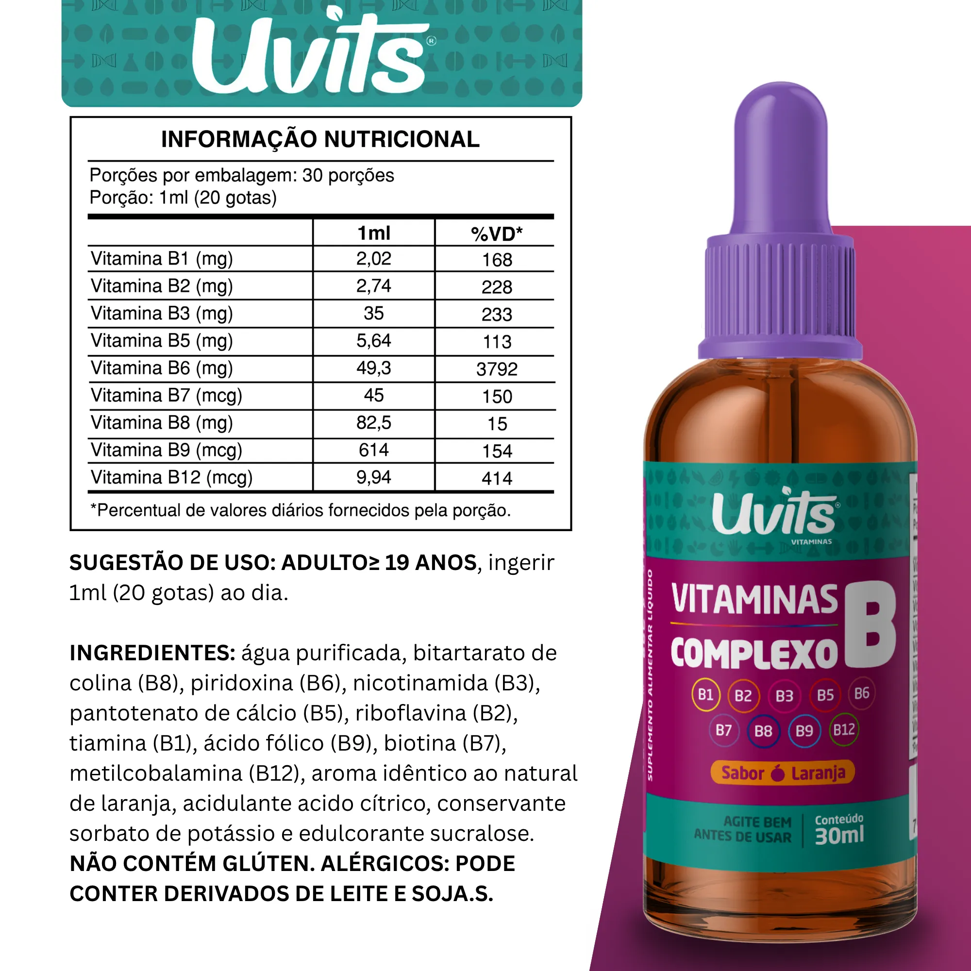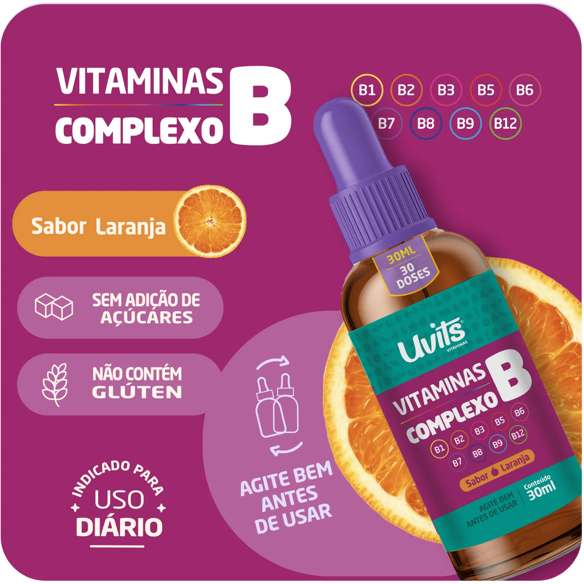 Vitaminas Complexo B 30ml Sublingual - Uvits