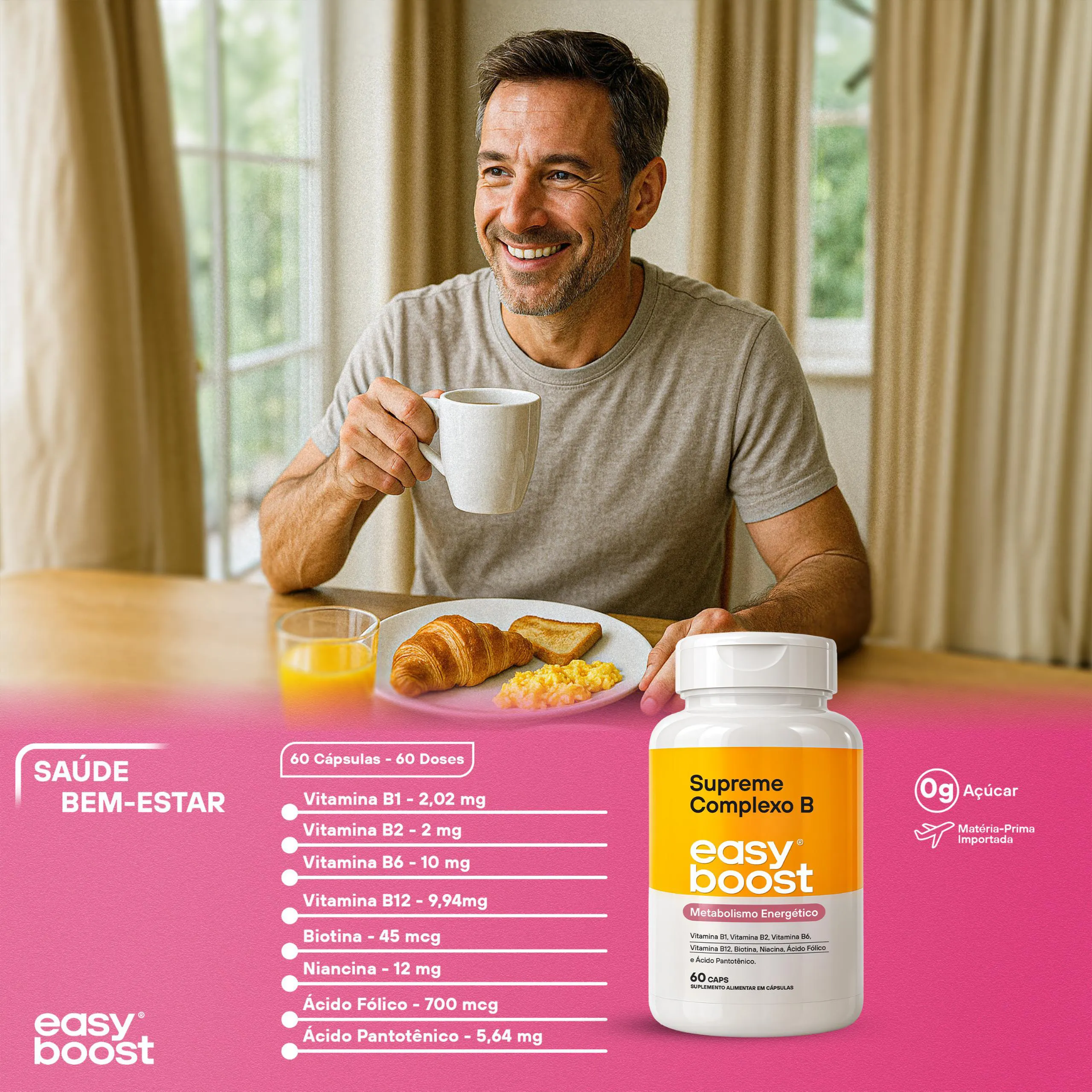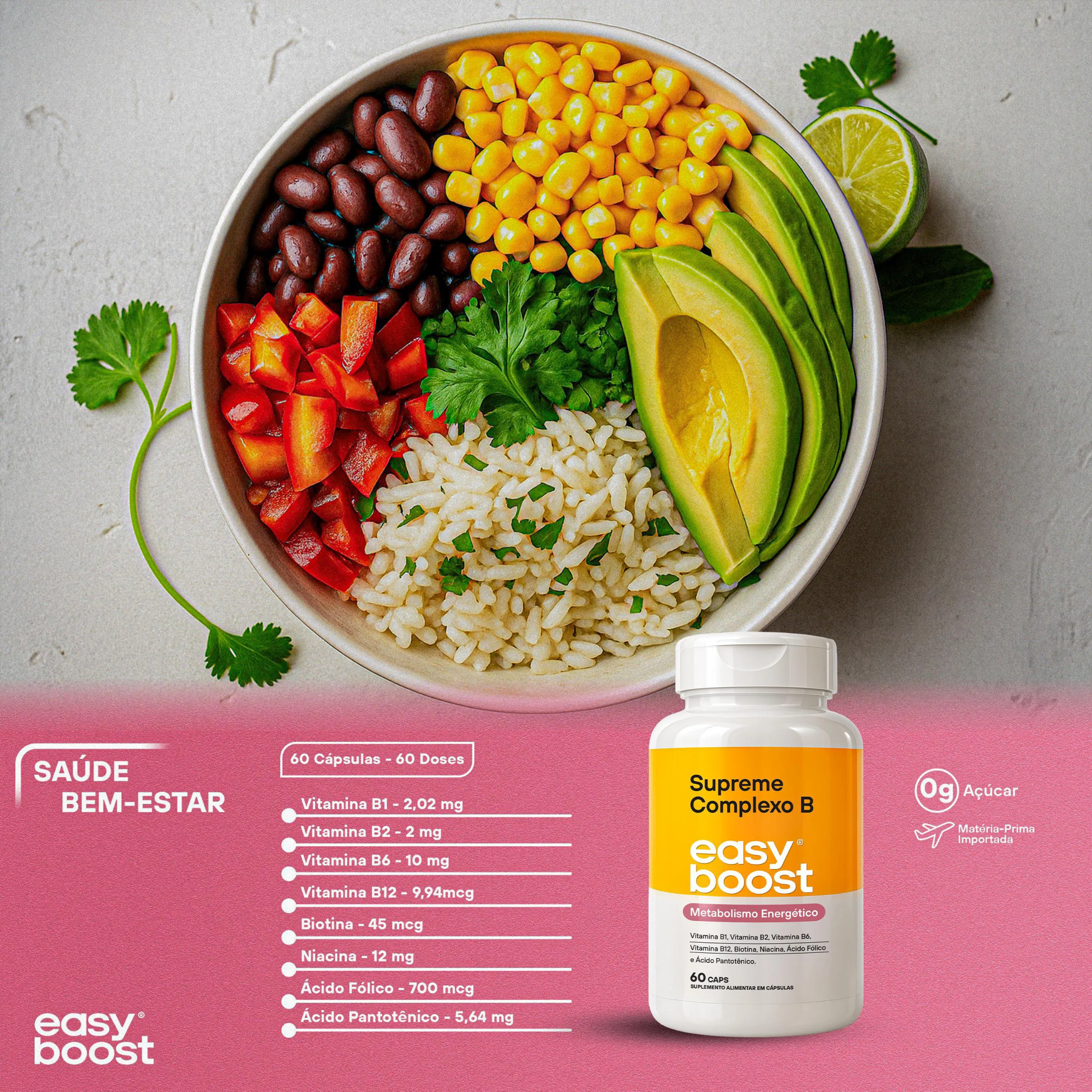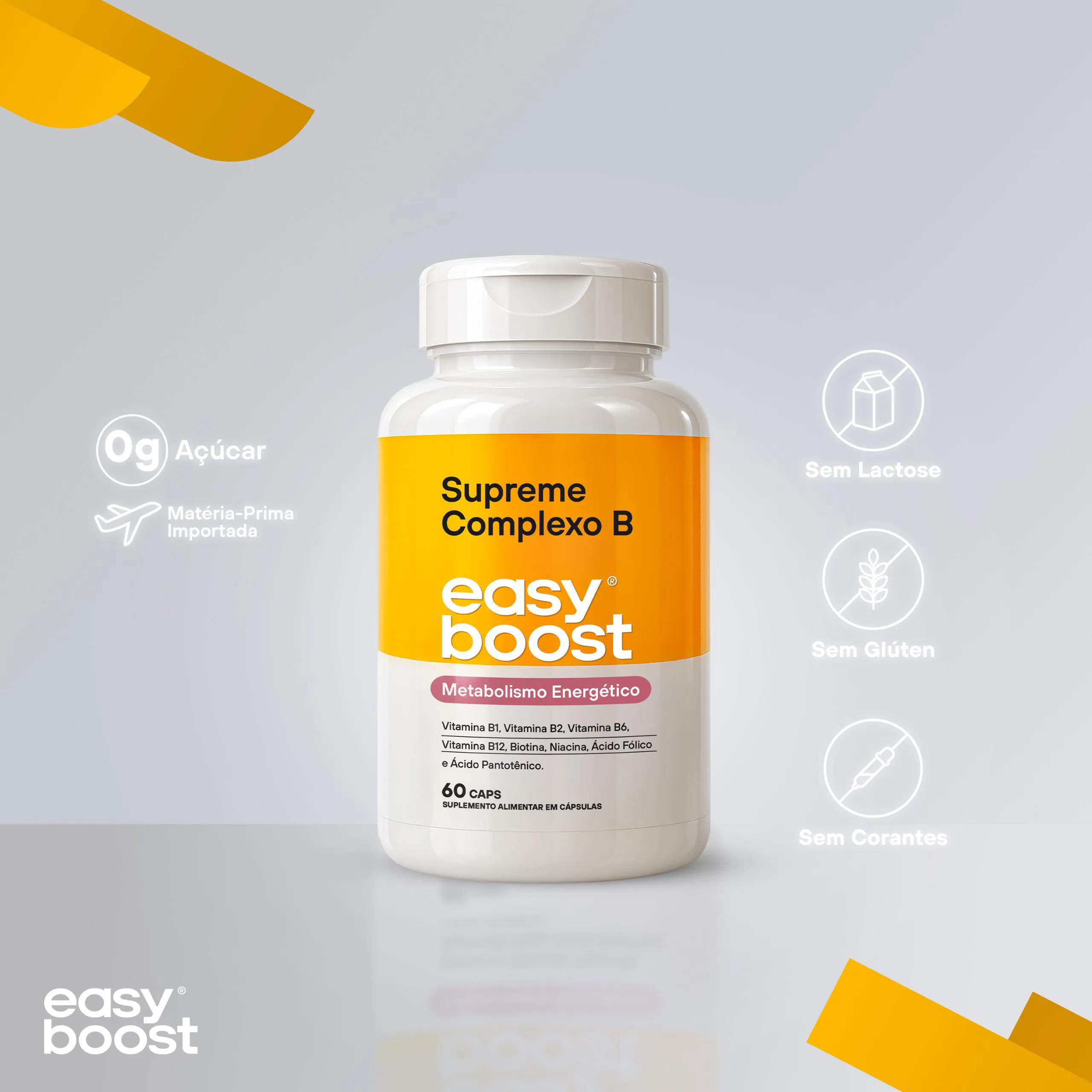 Neste anúncio você irá adquirir 2 potes de Supreme Complexo B Easy Boost com 60 cápsulas em cada, total 120 caps, com uma validade longa, de no minímo 12 meses.
