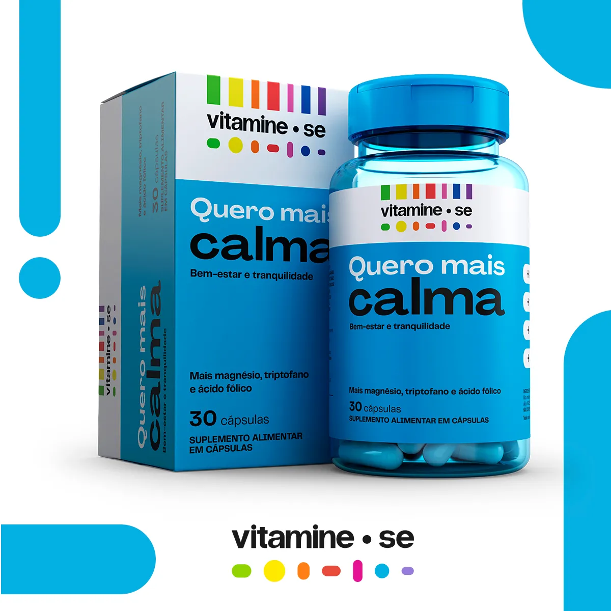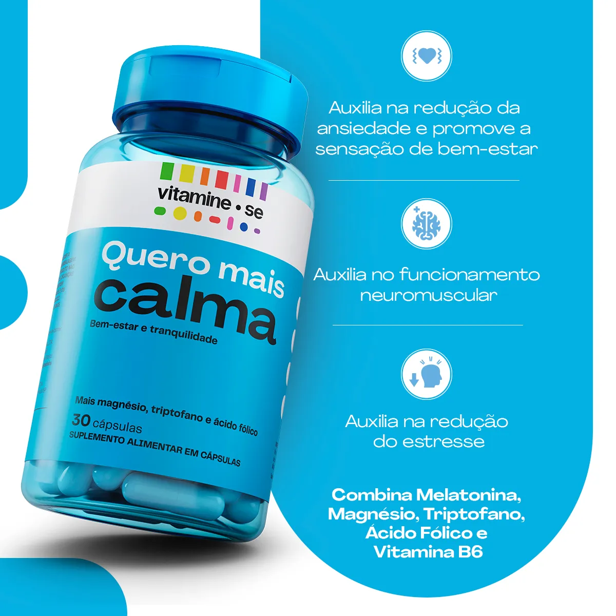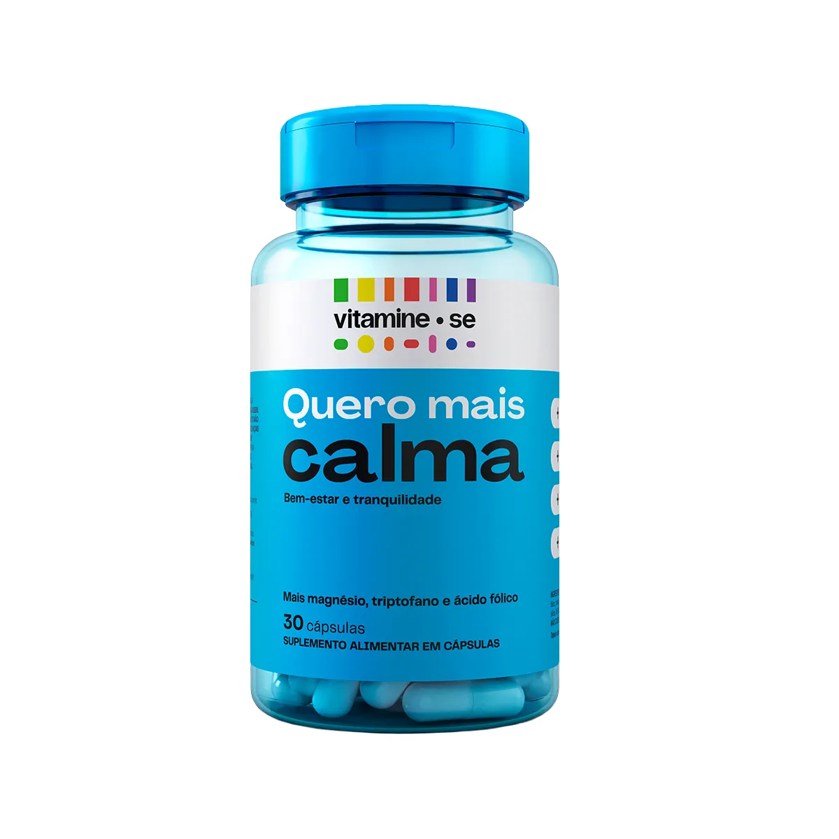 O Vitamine-se Quero Calma é um suplemento alimentar. Sua fórmula combina ingredientes selecionados como Magnésio, Triptofano e ácido fólico.
