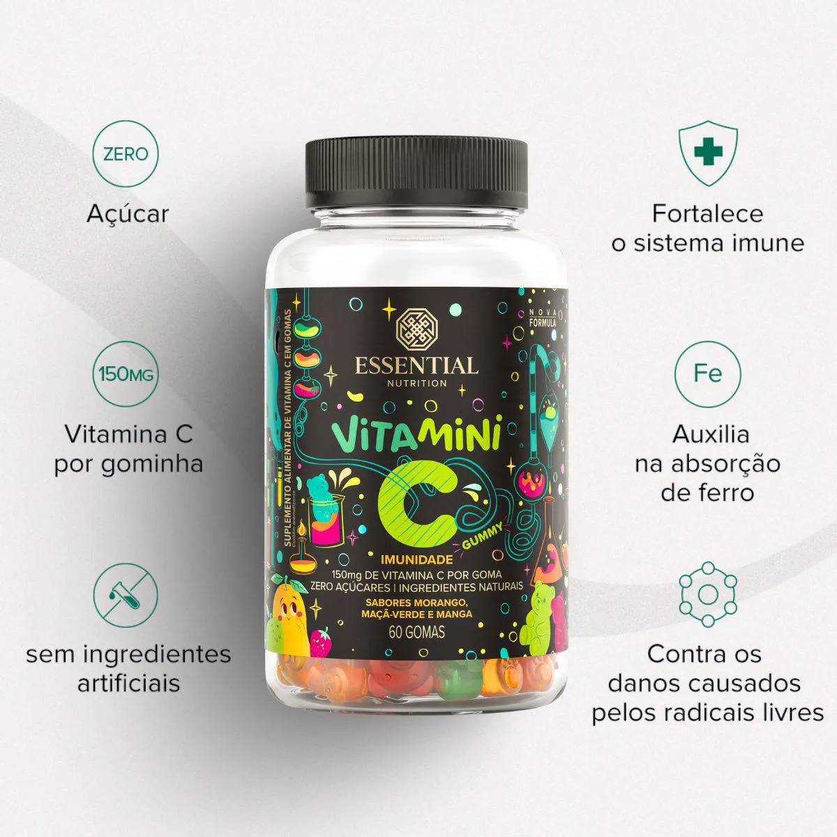 O que é e para que serve o Vitamini C Imunidade infantil Gummy 60 Gomas 180G Essential Sabores Sortidos?