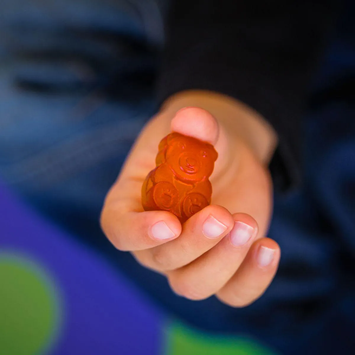 - Mastigue as gomas de sabores sortidos de frutas lentamente.