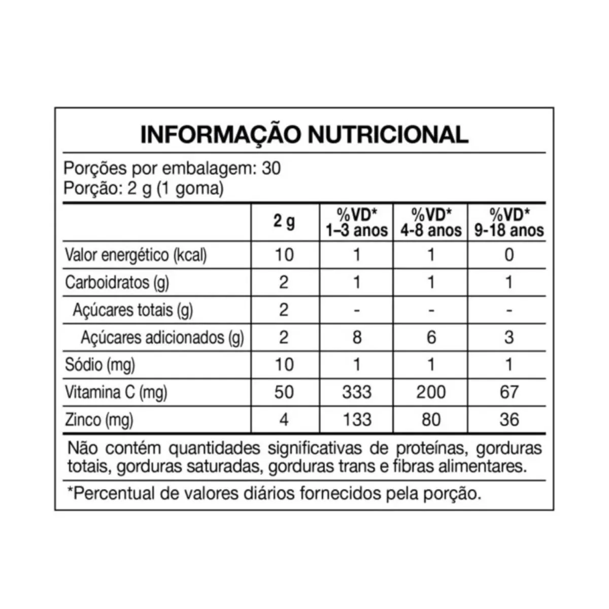 1 frasco com 30 gomas mastigáveis. Imagens meramente ilustrativas. Todas as informações divulgadas são de responsabilidade do fabricante