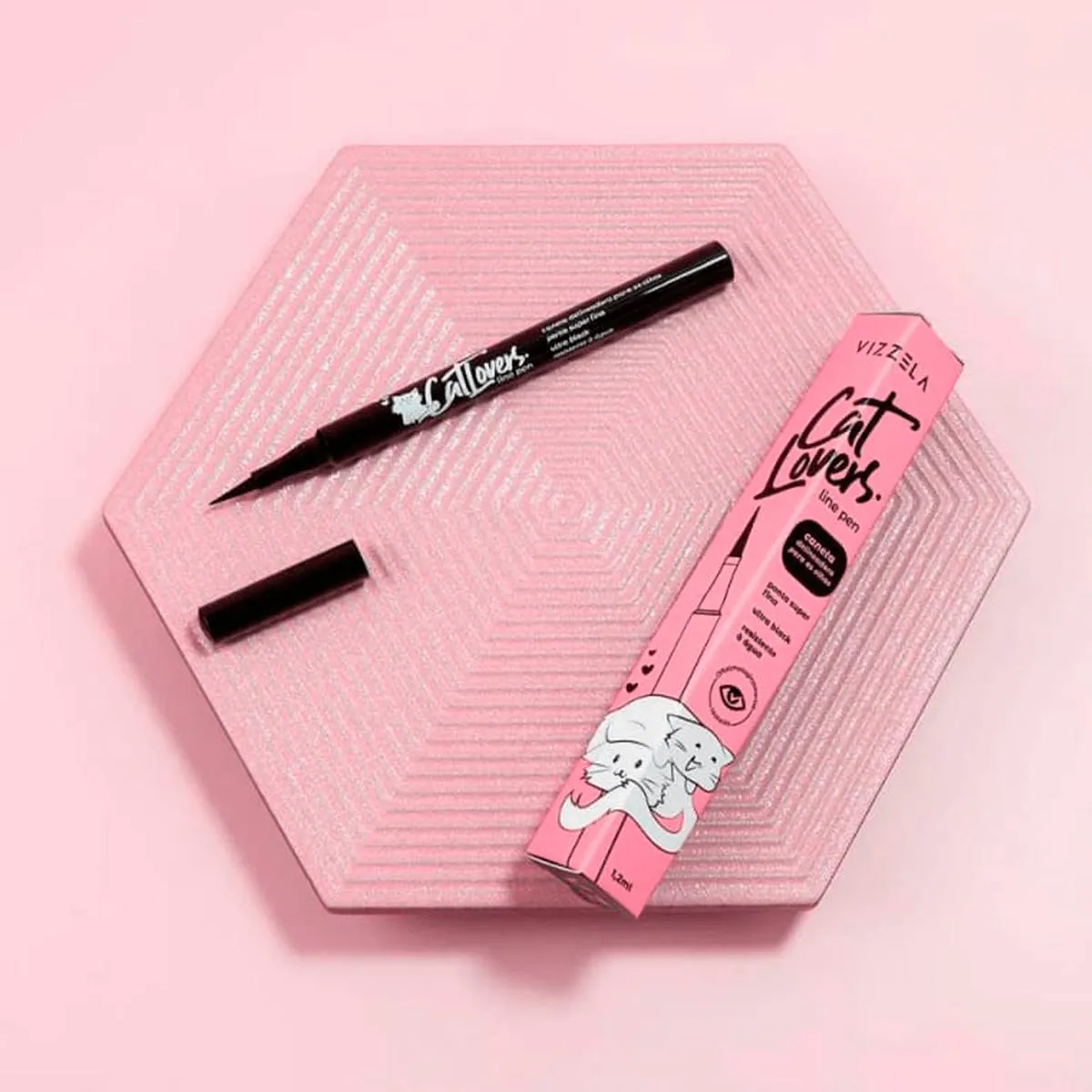 Vizzela Cat Lovers PretaCaneta delineadora. Vizzela Cat Lovers possui uma ponta super fina, ideal para fazer um delineado bem preciso.