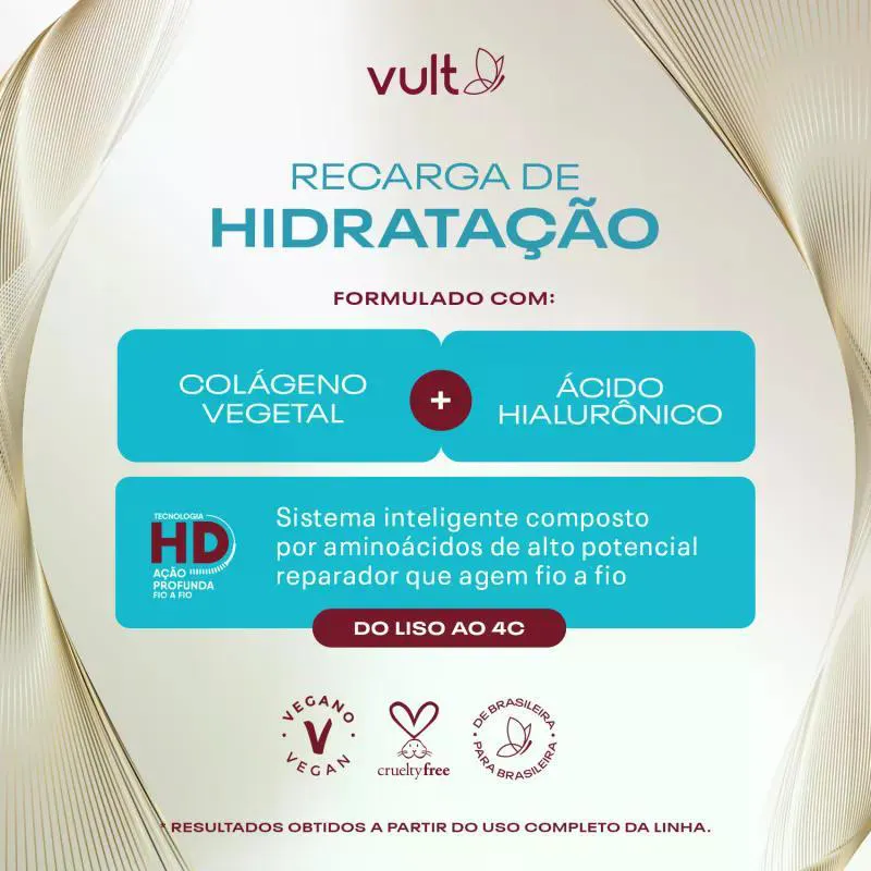 Descrição condicionador Vult Cabelos Recarga De Hidratação 325ml