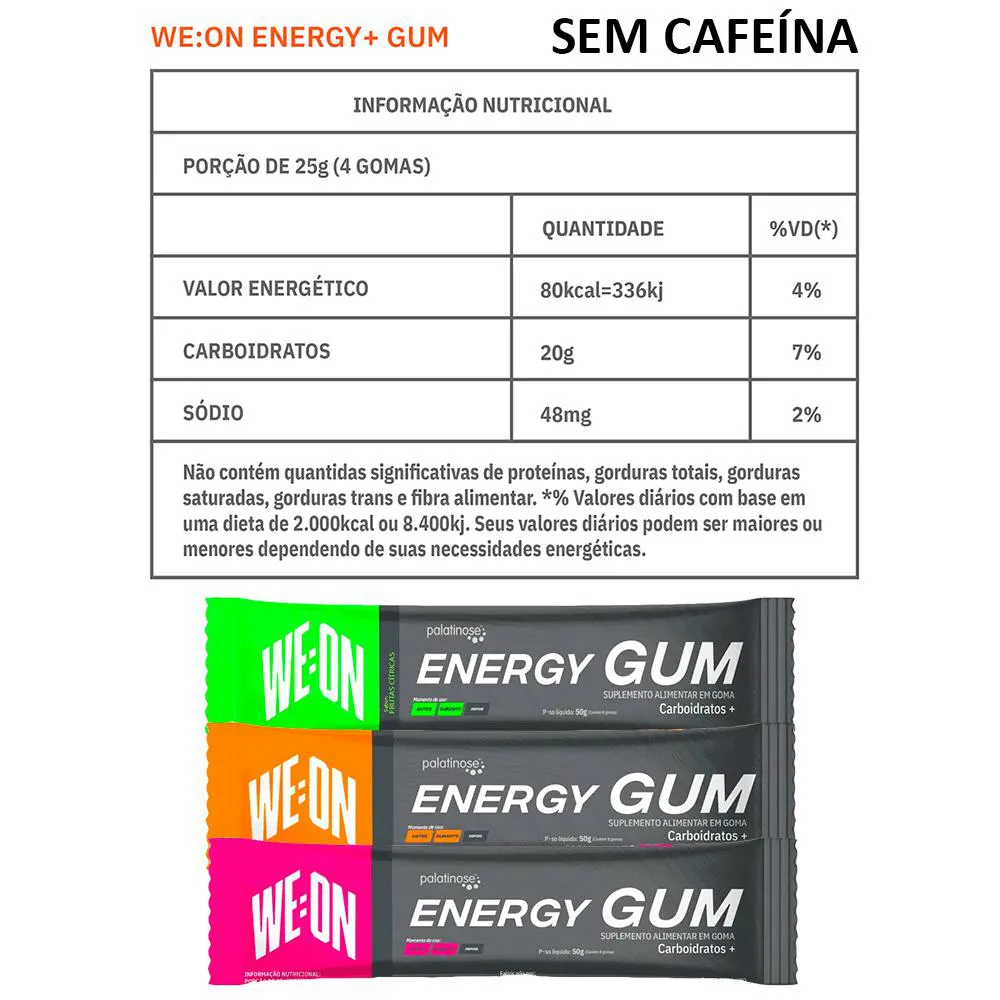 As Gomas We On são únicas no mercado para endurance, com adição de PALATINOSE que oferecem absorção gradativa durante atividade física.Com ingredientes naturais na composição e com sabor maravilhoso, macio e de fácil ingestão.Possui tamanho por goma ideal para ser consumido na pratica esportiva.
