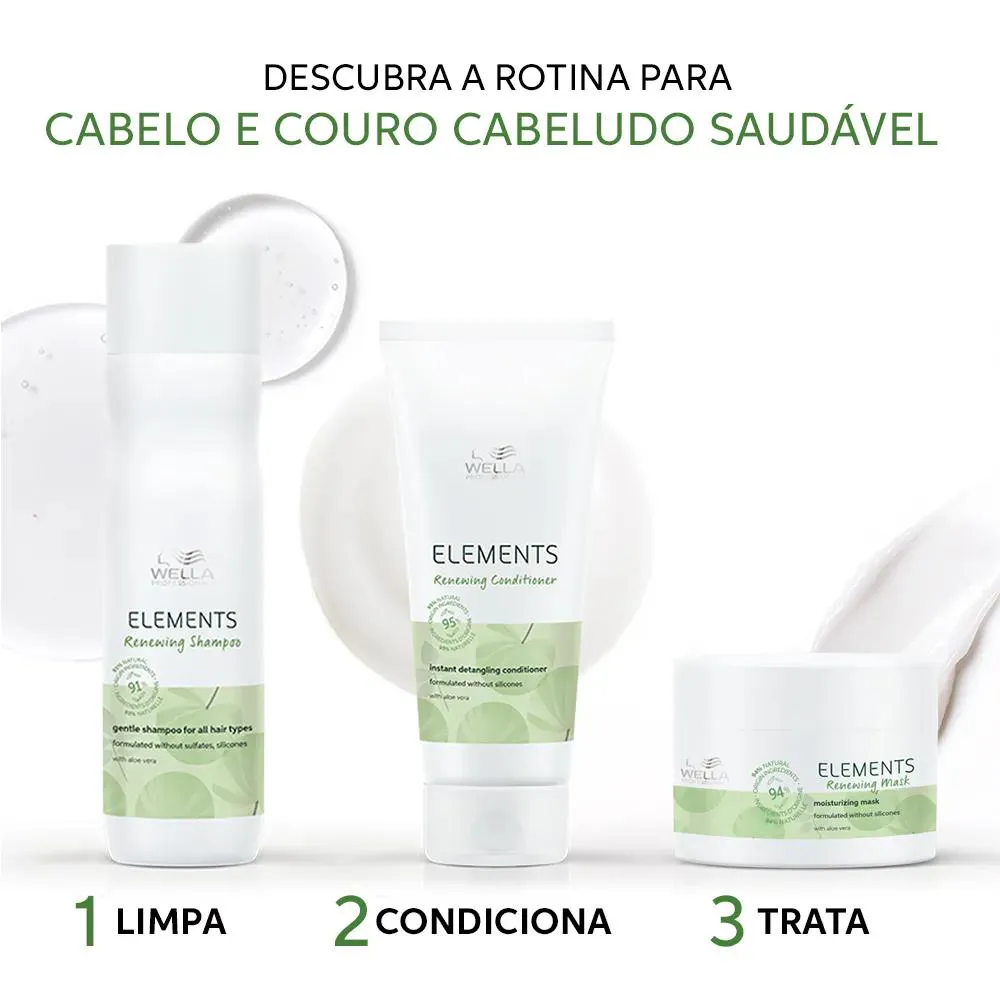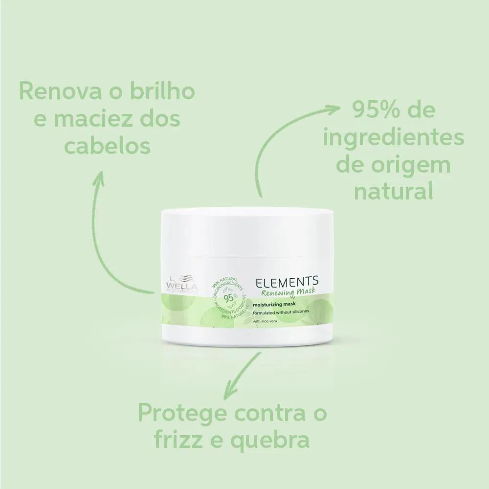 Máscara reparadora para todos os tipos de cabelo. Hidrata e restaura intensamente, enquanto fortalece os fios. Wella Professionals Elements Renewing Mask possui uma tecnologia rica em ativos naturais e orgânicos que agem profundamente na fibra, repondo e mantendo os nutrientes. Livre de parabenos, Wella Professionals Elements Renewing Mask conserva a estrutura interna e natural do cabelo. Sua textura e extremamente leve, garantindo uma recuperação intensa, porem sem deixar com aspecto pesado ou aGedir as fibras. Seus fios recuperados e fortalecidos, com a saúde revitalizada e a queratina protegida!