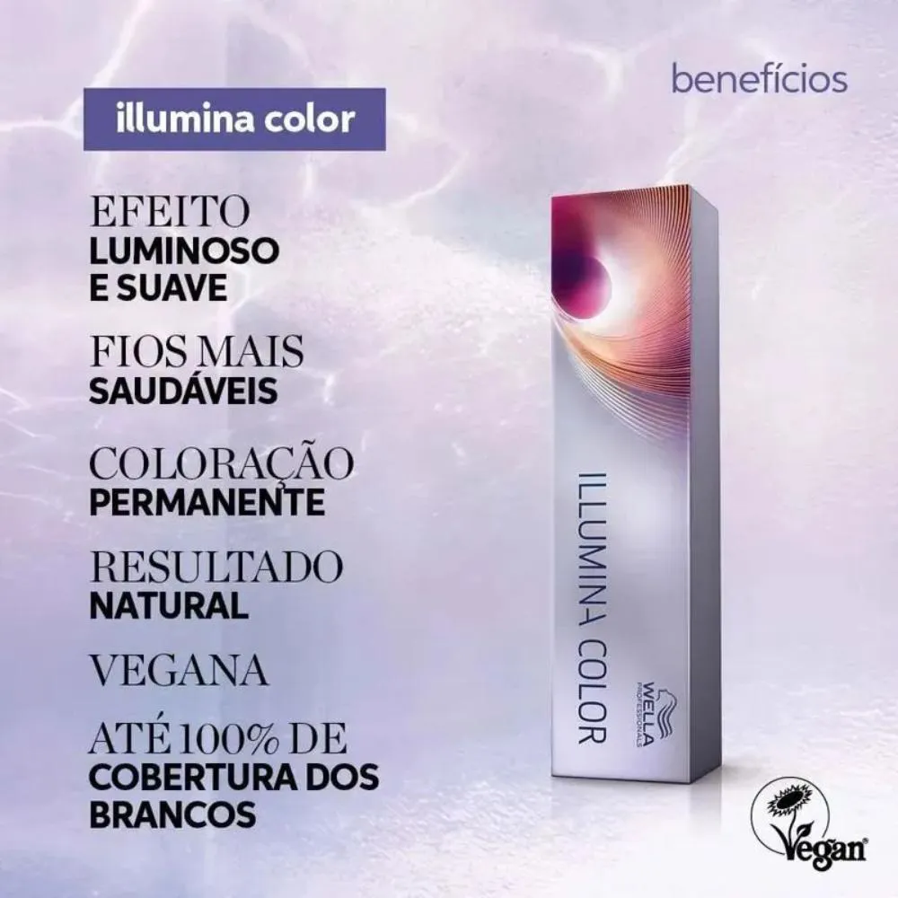 A Wella Illumina Color 7/81 é uma tintura permanente profissional para cabelos, desenvolvida com tecnologia Microlight e baixa concentração de amônia. Serve para colorir os cabelos, proporcionando um tom louro médio com reflexos pérola acinzentados, cobrindo totalmente os fios brancos e oferecendo um resultado elegante, sofisticado e luminoso, com brilho intenso e aparência natural.