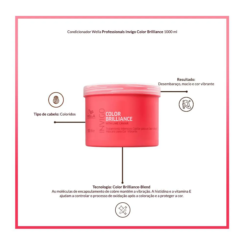 A Máscara Wella Invigo Color Brilliance de 500 ml, oferece um cuidado profundo para os cabelos coloridos e com mechas. Em tamanho profissional, que proporciona mais aplicações. Ela restaura, protege e realça a cor, deixando os fios sedosos e radiantes. Benefícios: