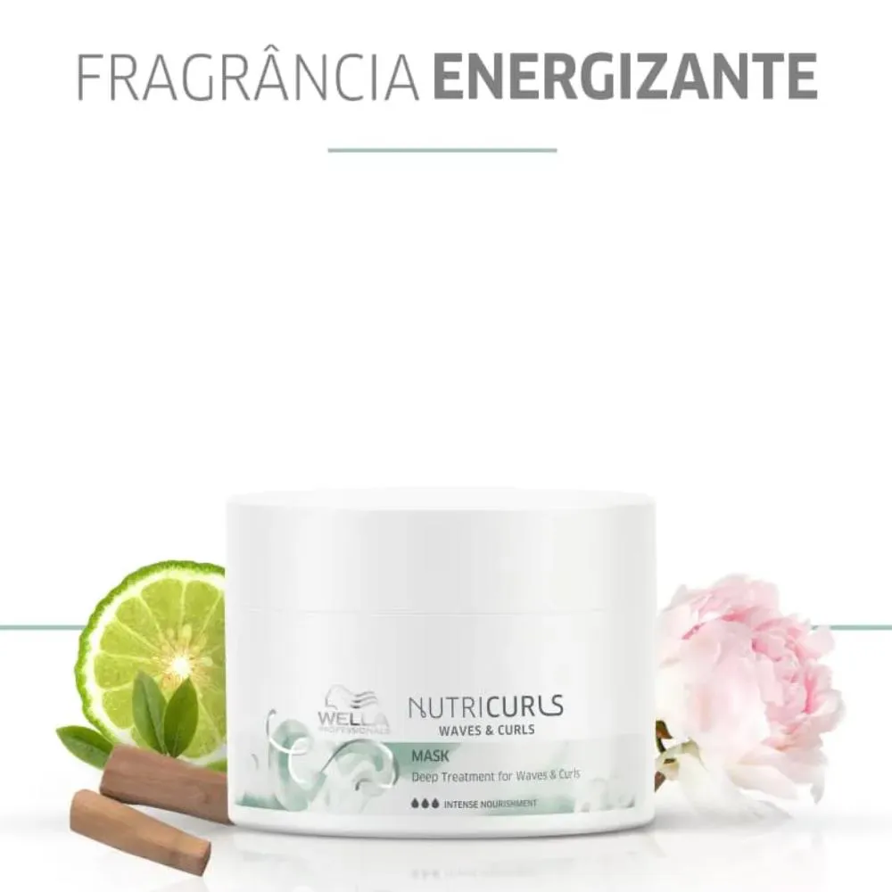 Wella Professionals Nutricurls Máscara de tratamento para cabelos ondulados ou cacheados. Máscara Wella Professionals Nutricurls nutre intensamente, reduz o frizz e traz maciez para os cachos. Perfeito para ter fios maleáveis, com movimento e muito definidos. A Máscara Nutricurls, de Wella Professionals, é rica em ativos nutritivos e suavizantes, além da tecnologia Nourish-in, que garante o nível de nutrição perfeita para os fios, combate os fios rebeldes e deixa as curvas marcadas. Ação Nourish-in: tecnologia desenvolvida com extrato de trigo e óleo de jojoba. Ajuda a marcar as curvas, combater o frizz e dar toque macio. Nutre no nível certo, sem pesar.