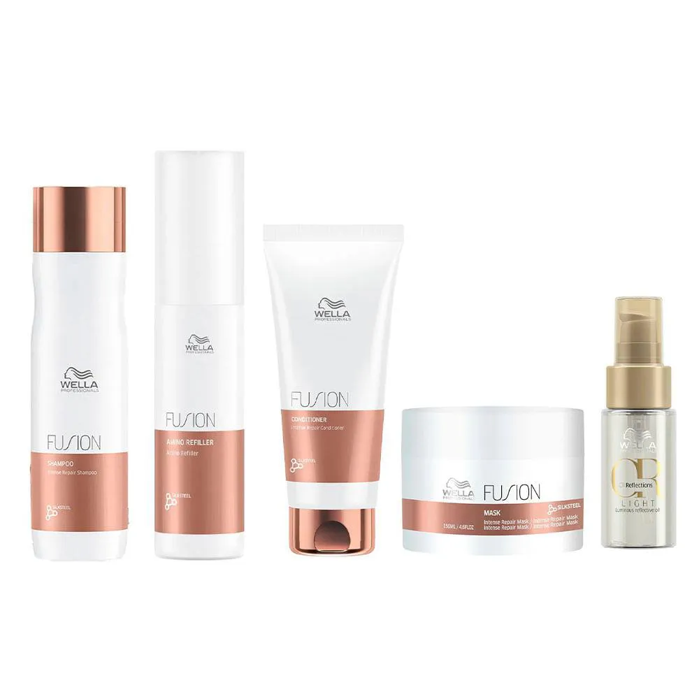 Wella Professionals Fusion Kit – Shampoo + Condicionador + Máscara + Amino Refiller + Óleo