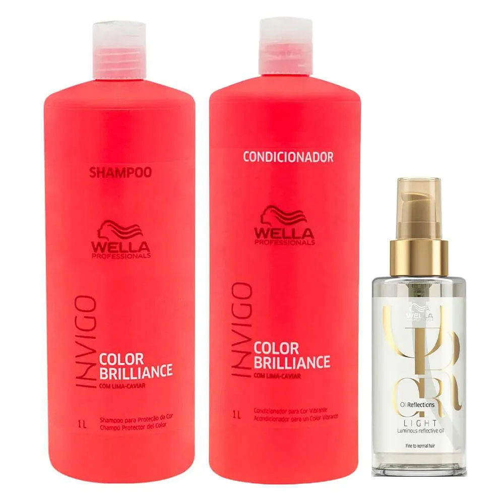 Wella Professionals Invigo Color Brilliance Kit – Shampoo + Condicionador + Óleo Light