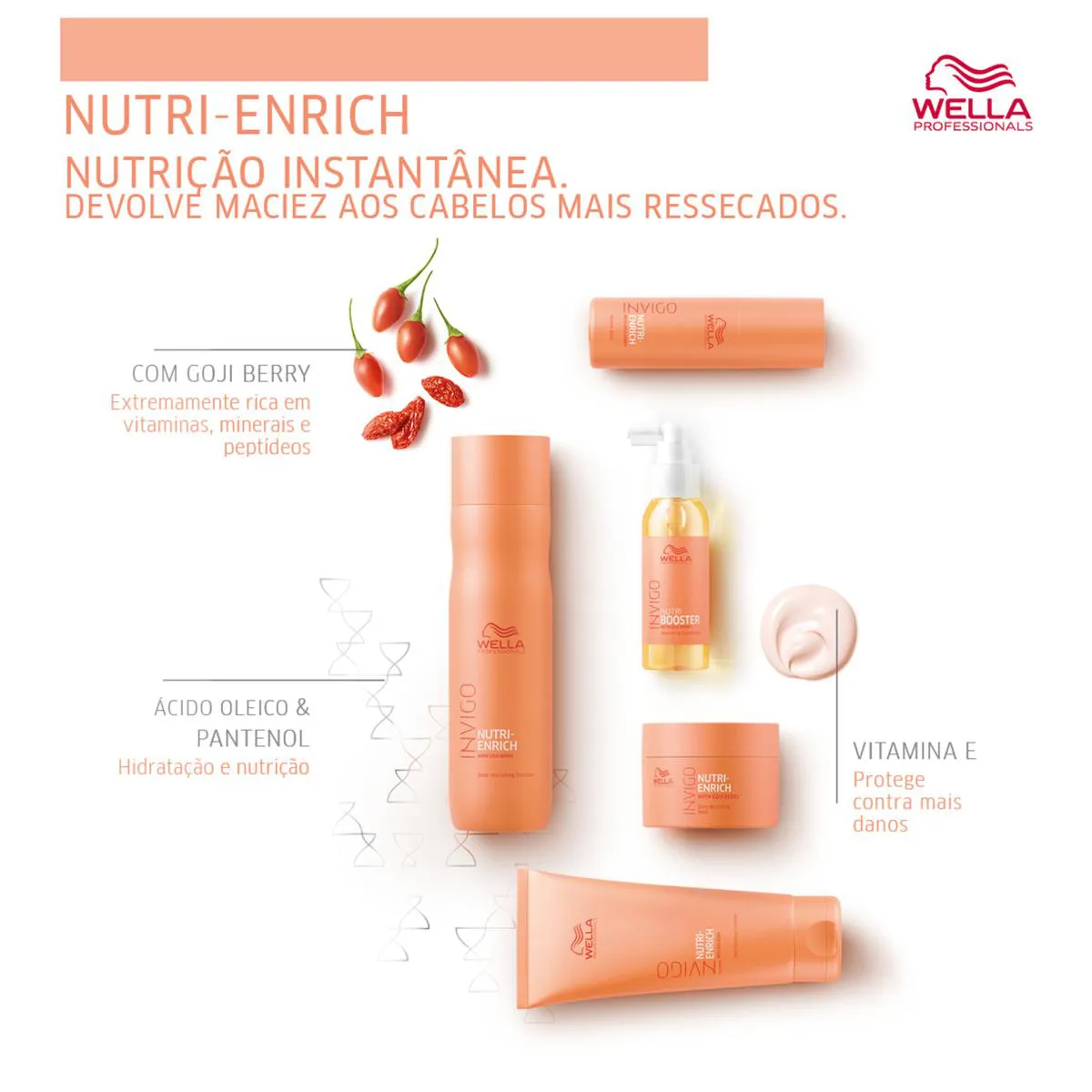 saúde dos fios e ainda garantir um toque sedoso e muito brilho. A Máscara Capilar Wella Invigo Nutri-Enrich traz fórmula rica em ingredientes que tratam a fibra capilar tanto em sua superfície, suavizando-a, como na parte mais profunda. Afinal, a máscara de nutrição Wella age na reposição de nutrientes essenciais e de hidratação. Além disso, possui uma fragrância luxuosa frutal chipre almiscarado. O embaixador de Wella Professionals, Dougllas Dias, que assinou o look da campanha de Invigo Nutri-Enrich, diz: “O que eu mais gosto dessa linha, é que ela deixa o