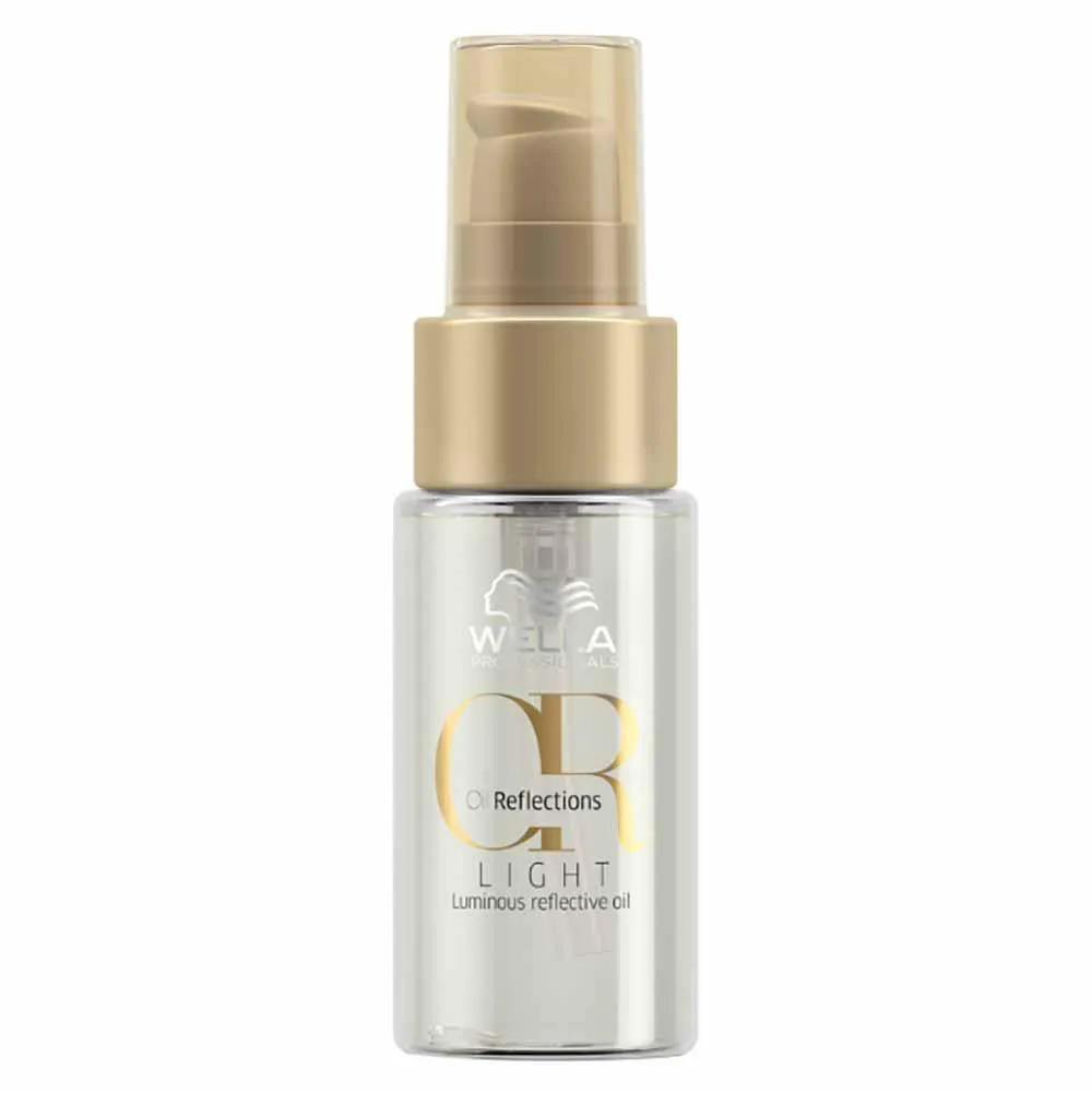 Wella Professionals Oil Reflectionse Light é um óleo versátil com uma textura leve e movimento harmonioso que protege, nutre e deixa o cabelo macio e com efeito gloss. Com óleos de camélia, macadâmia e abacate, vitamina e e extrato de chá branco. Pode ser usado como pré-shampoo, tratamento noturno, leave-in, proteção térmica contra secador e extra brilho. Protege durante processos químicos, além de proteger a cor do cabelo.