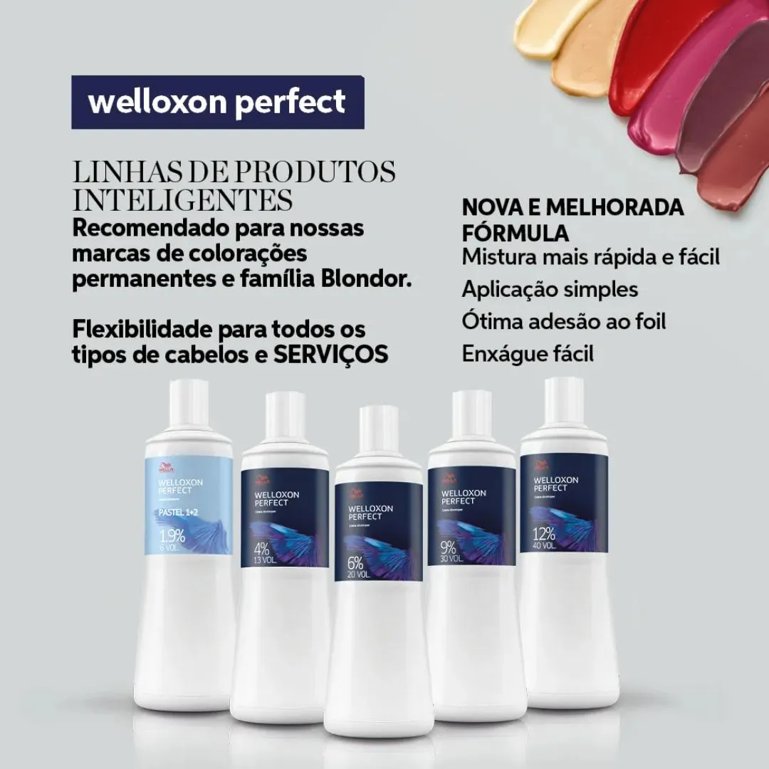 Oxidante para coloração profissional 30 volumes. Wella Professionals Welloxon Perfect 9% revela cor homogênea e intensa, fiel à cartela de cores. Clareia até 3 tons, atribui cor, e é ideal para técnicas de iluminação. O Oxidante 30 Volumes Wella Professionals Welloxon Perfect 9% permite a entrada de pigmentos no fio e garante a durabilidade da cor, para um resultado vibrante e lindo. Foi desenvolvido para ser utilizado com as colorações permanentes de Wella Professionals. Como usar: Siga atentamente às instruções do oxidante e na bula da coloração escolhida. Atente-se às quantidades de mistura e ao tempo de pausa indicados. Observações: - Recomendamos que este produto seja usado apenas por profissionais; - Gestantes e lactantes devem consultar seu médico antes de fazer o uso; - Não deve ser aplicado em menores de 15 anos; - Em caso de irritação ou ferida pré-existente no couro cabeludo, consulte um médico antes da aplicação; - Utilize uma luva descartável no momento da aplicação. Resultado: Peróxido de Hidrogênio 9%: responsável por revelar cor uniforme e fiel ao cabelo. Fórmula estabilizada. Cor revelada com perfeição, luminosidade e pigmentação intensa. Toque macio e saudável.