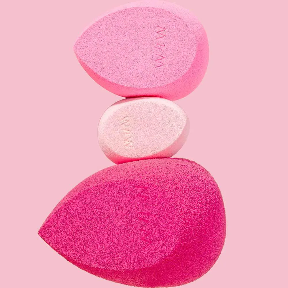 Com três esponjas em tamanhos diferentes, este kit atende a todas as suas necessidades de aplicação, desde cobrir áreas amplas do rosto até alcançar detalhes mais precisos. Seja aplicando base, iluminador ou corretivo, essas esponjas garantem uma cobertura perfeita e uniforme.