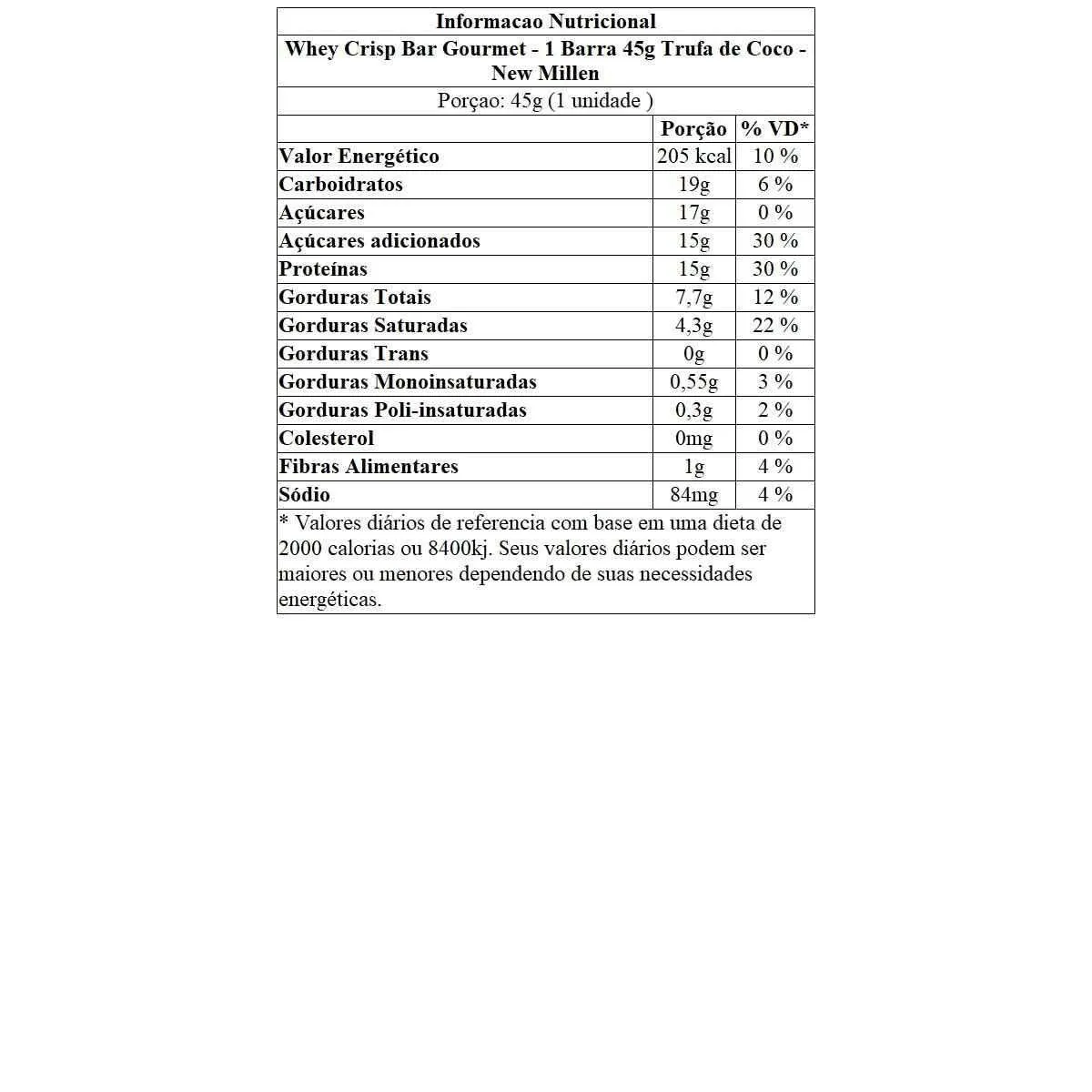 Whey Crisp Bar Gourmet - 1 Barra 45G Trufa de Coco - New Millen
