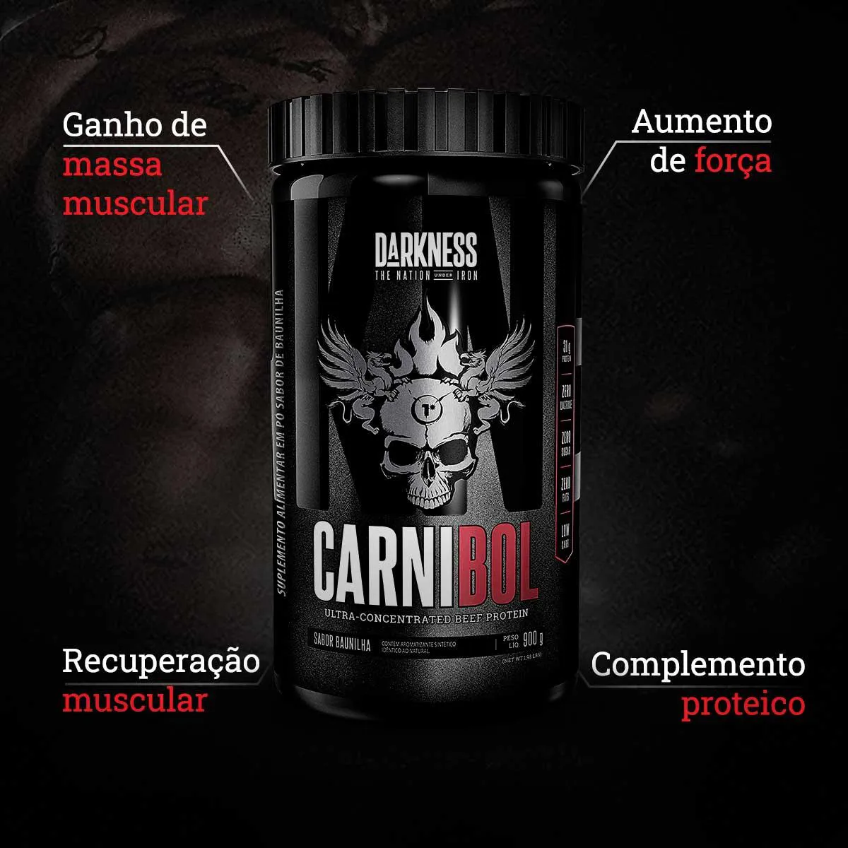 A proteína de carne é uma aliada poderosa de quem busca ganhos insanos de força e massa muscular. O Carnibol da Darkness é um suplemento proteico desenvolvido com tecnologia, que traz um blend exclusivo de proteína de carne bovina da melhor qualidade e peptídeos de colágeno (ProMyoBlend®), com um excelente aporte nutricional para os monstros do crescimento. Por ser um produto isento de lactose, açúcares e gorduras, a proteína de carne serve como uma ótima alternativa para alérgicos e intolerantes à lactose ou pessoas que não querem consumir proteínas de origem láctea. Carnibol proteína de carne oferece: