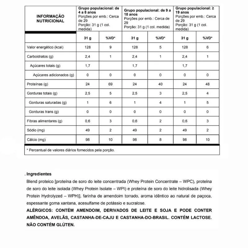 Combinação de whey protein isolado, concentrado e hidrolisado: As proteínas são nutrientes importantes para formação dos músculos e ossos, além da manutenção e reparação dos tecidos;