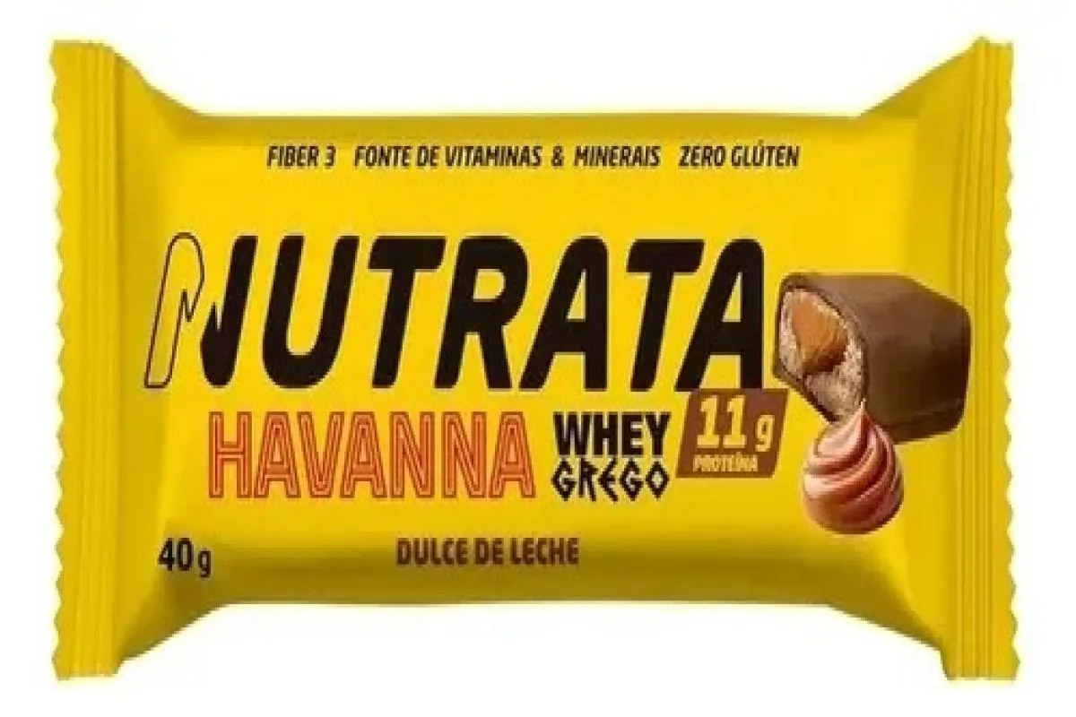 A barra de proteína feita com o legítimo Dulce de Leche Havanna. Whey Grego Bar Dulce de Leche Havanna, une a credibilidade da Nutrata no desenvolvimento de barras de proteína com a tradição e elegância do tradicional dulce de leche Havanna, em uma apresentação surpreendente, recheada de sabor e nutrição. Excelência e qualidade Nutrata – Whey Grego Bar eleita pelos consumidores como a melhor barra de proteína.Sofisticação e tradição Havanna – O verdadeiro dulce de leche artesanal argentino.Recheio macio e cremoso com o autêntico dulce de leche argentino Diferenciais: Fonte de fibras prebióticas (Orafti®, Synergy1); Fonte de vitaminas e minerais; Mix especial de vitaminas A + B6 + B9 + B12 + D3;Minerais Zinco + Selênio + Picolinato de Cromo. Benefícios: - Possui diferentes proteínas: WPC + WPI + caseinato de cálcio + peptídeos de colágeno;- Alto valor biológico e perfil de aminoácidos essenciais;- Nutricionalmente balanceada;- Pratica, podendo ser consumida em qualquer hora e lugar;- Sabor incomparável e cremosidade única;- Fornece 11g de proteína por barra;- Fonte de fibra de alta tecnologia (Orafti Synergy);- Mix especial de vitaminas e minerais.