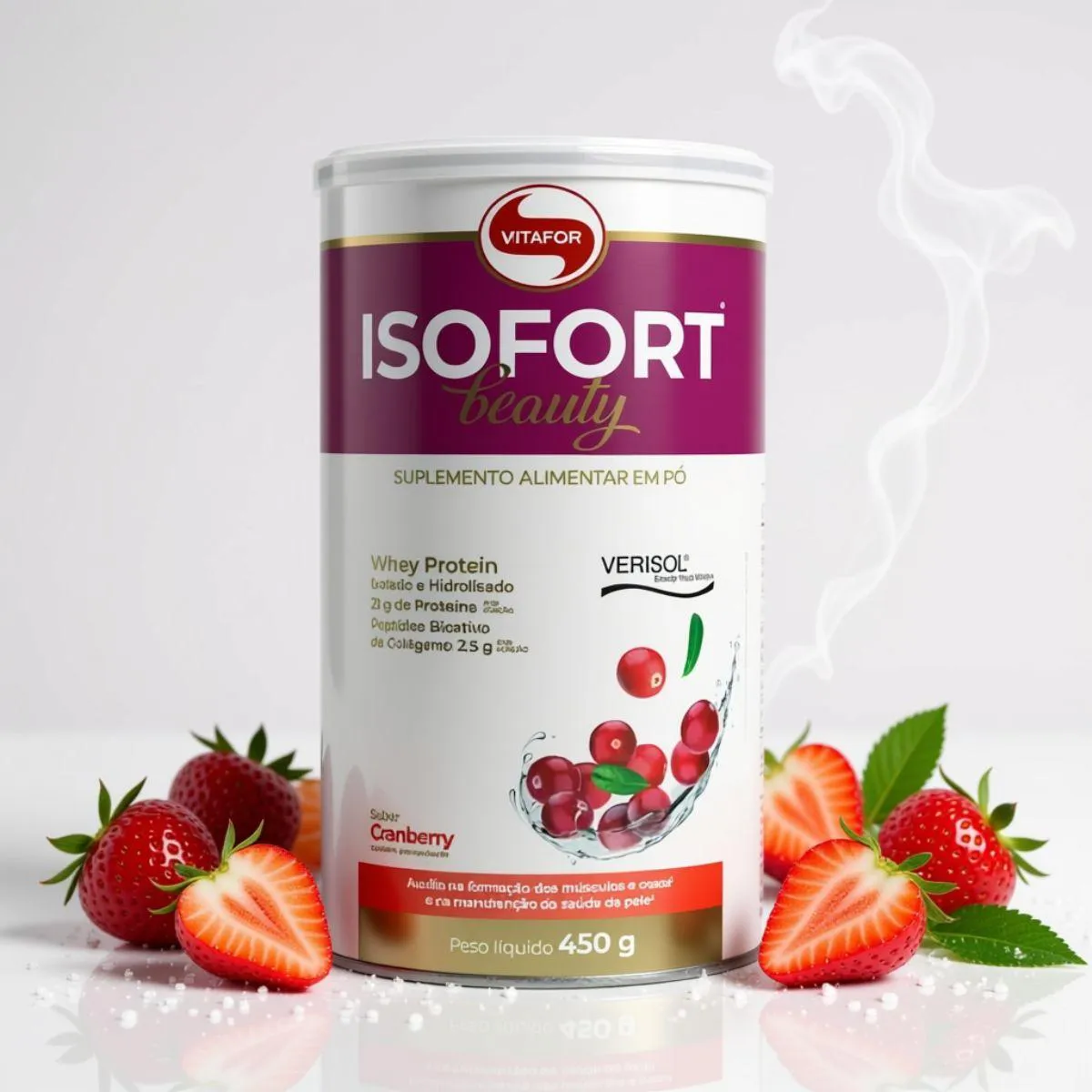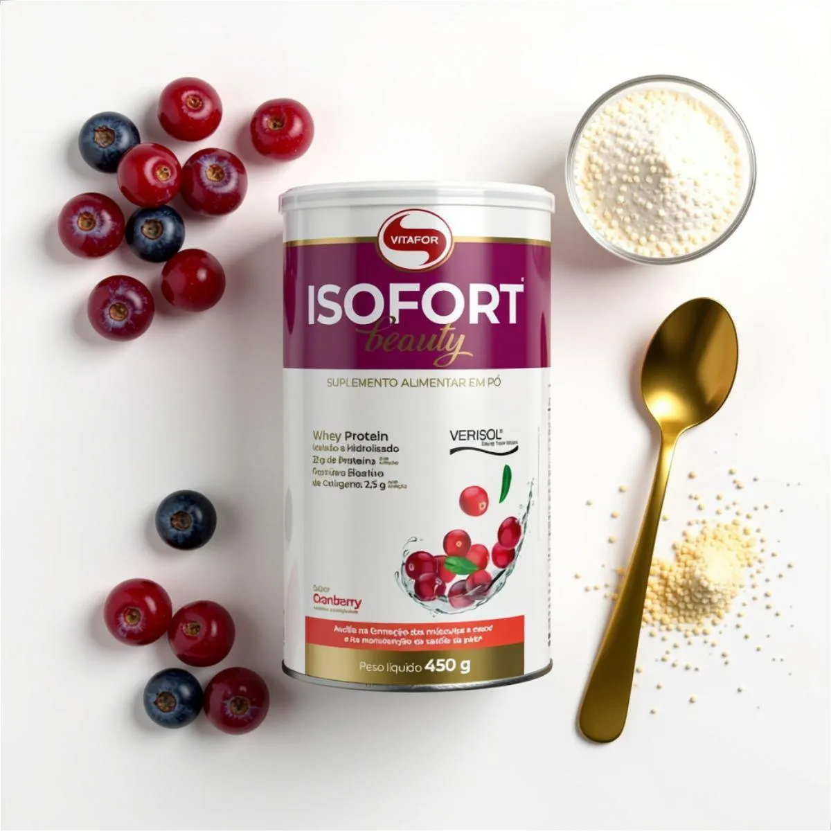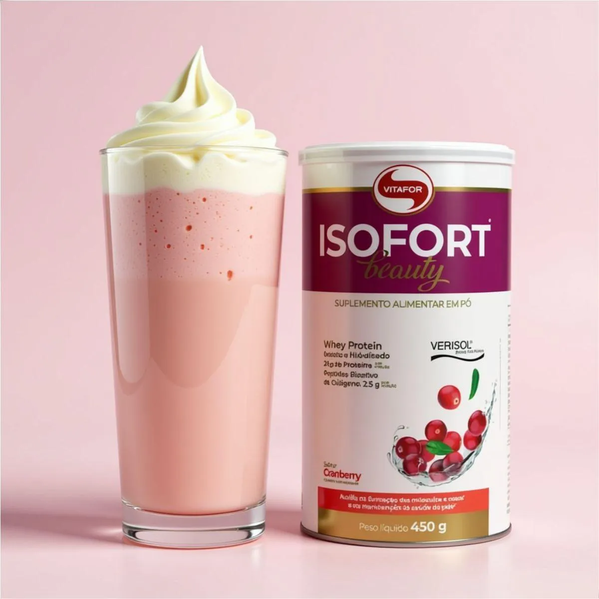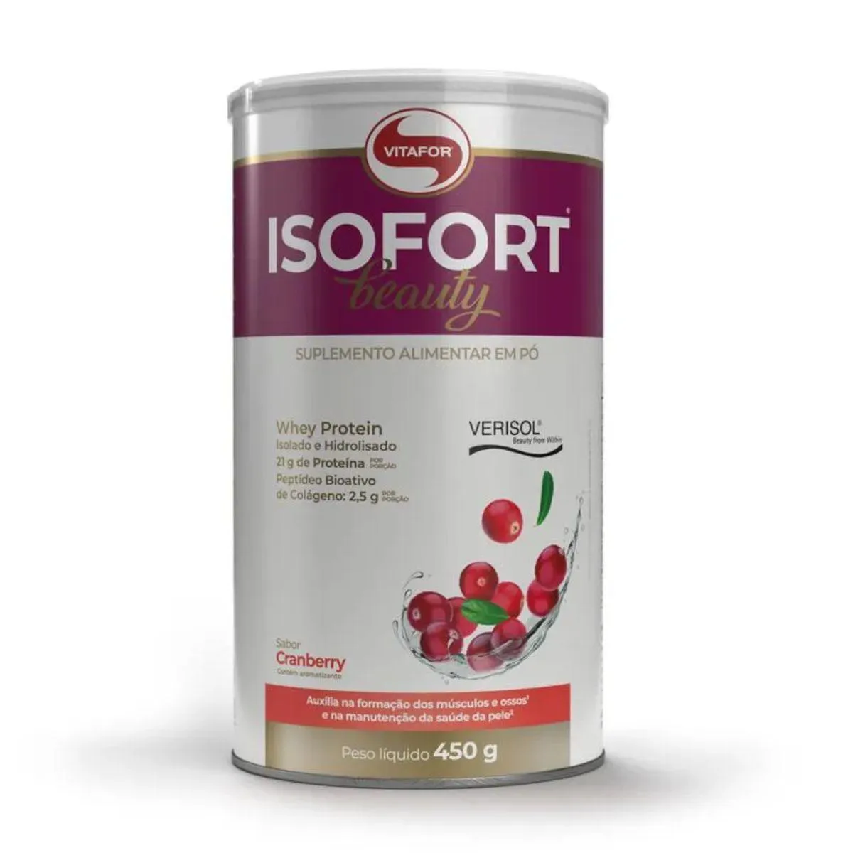 Whey Isofort Beauty Verisol Isolado e Hidrolisado 450G Vitafor Cranberry