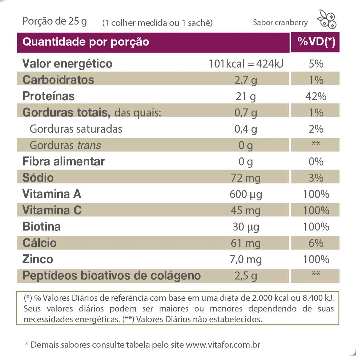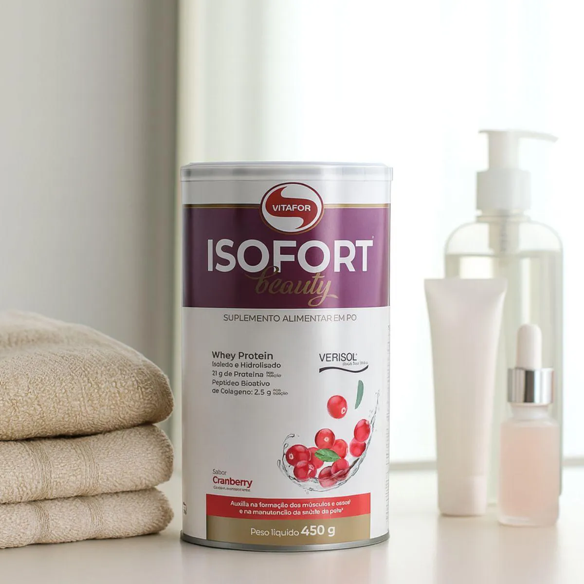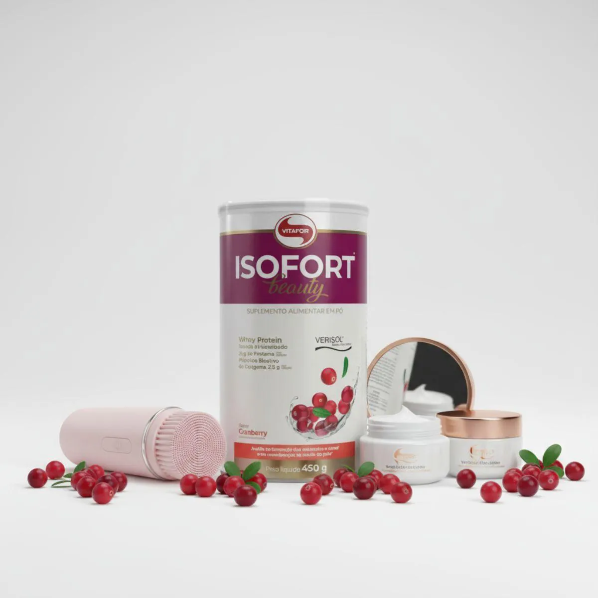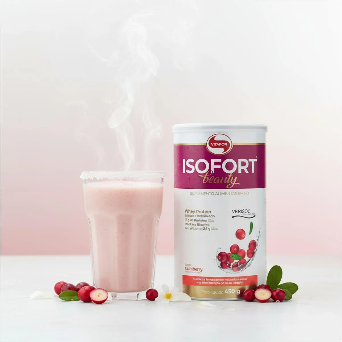 Whey Isofort Beauty Verisol Isolado e Hidrolisado 450G Vitafor Cranberry