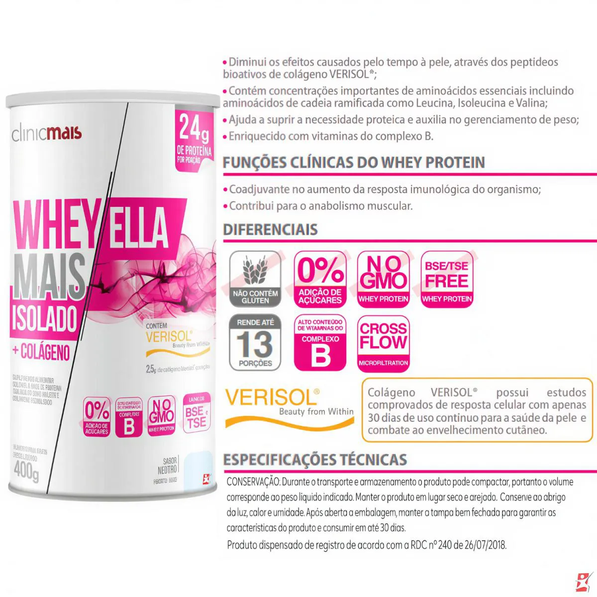 Este suplemento é indicado para indivíduos com idade igual ou superior a 19 anos. Gestantes, lactantes e crianças devem consumi-lo apenas com orientação profissional. Pessoas com intolerância à lactose ou alergia a derivados do leite devem evitar o produto.O Whey Mais Ella Isolado + Colágeno é vegano?